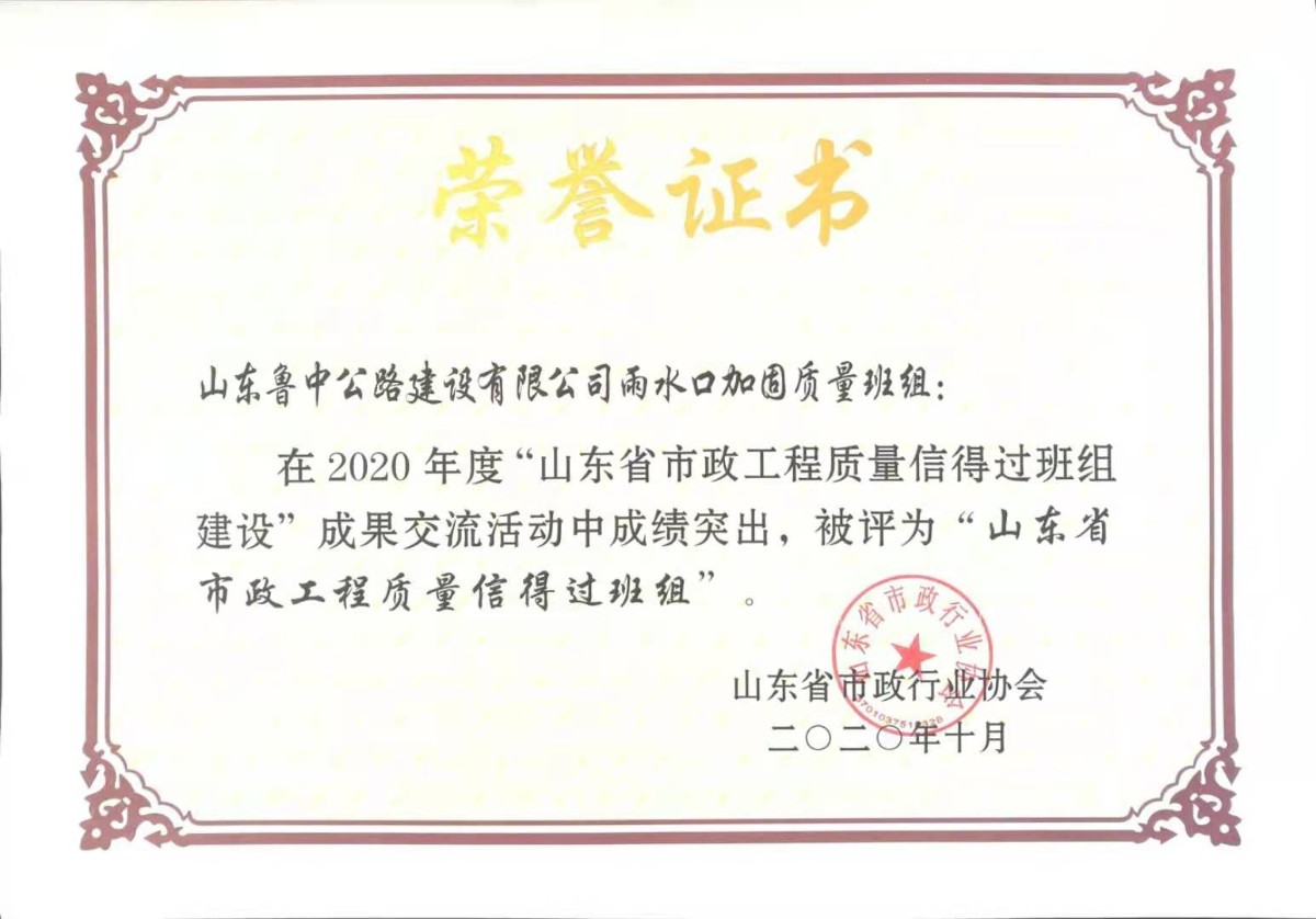 - 2020年度山東省市政工程質(zhì)量信得過班組