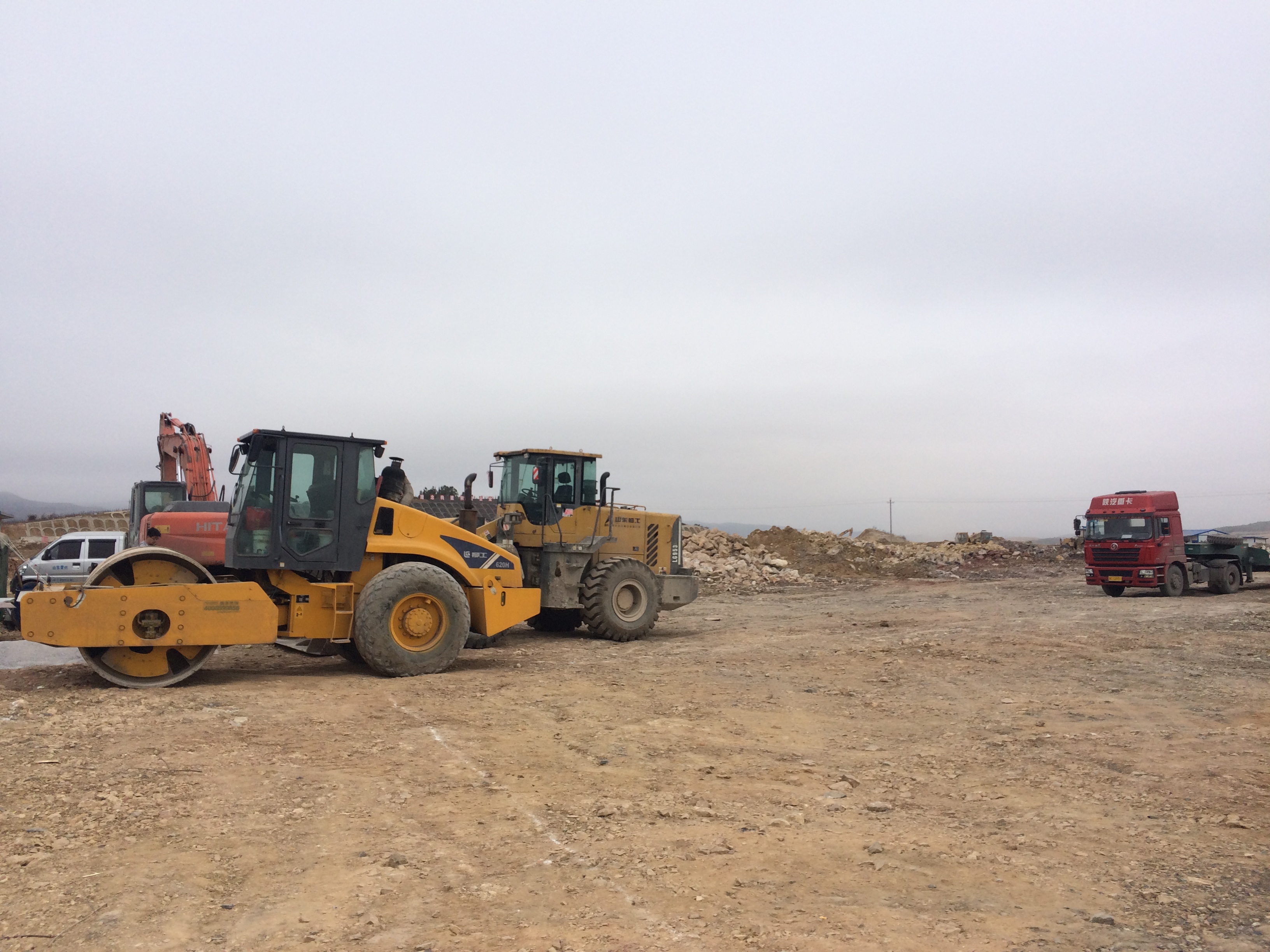 壓路機正在壓實地基