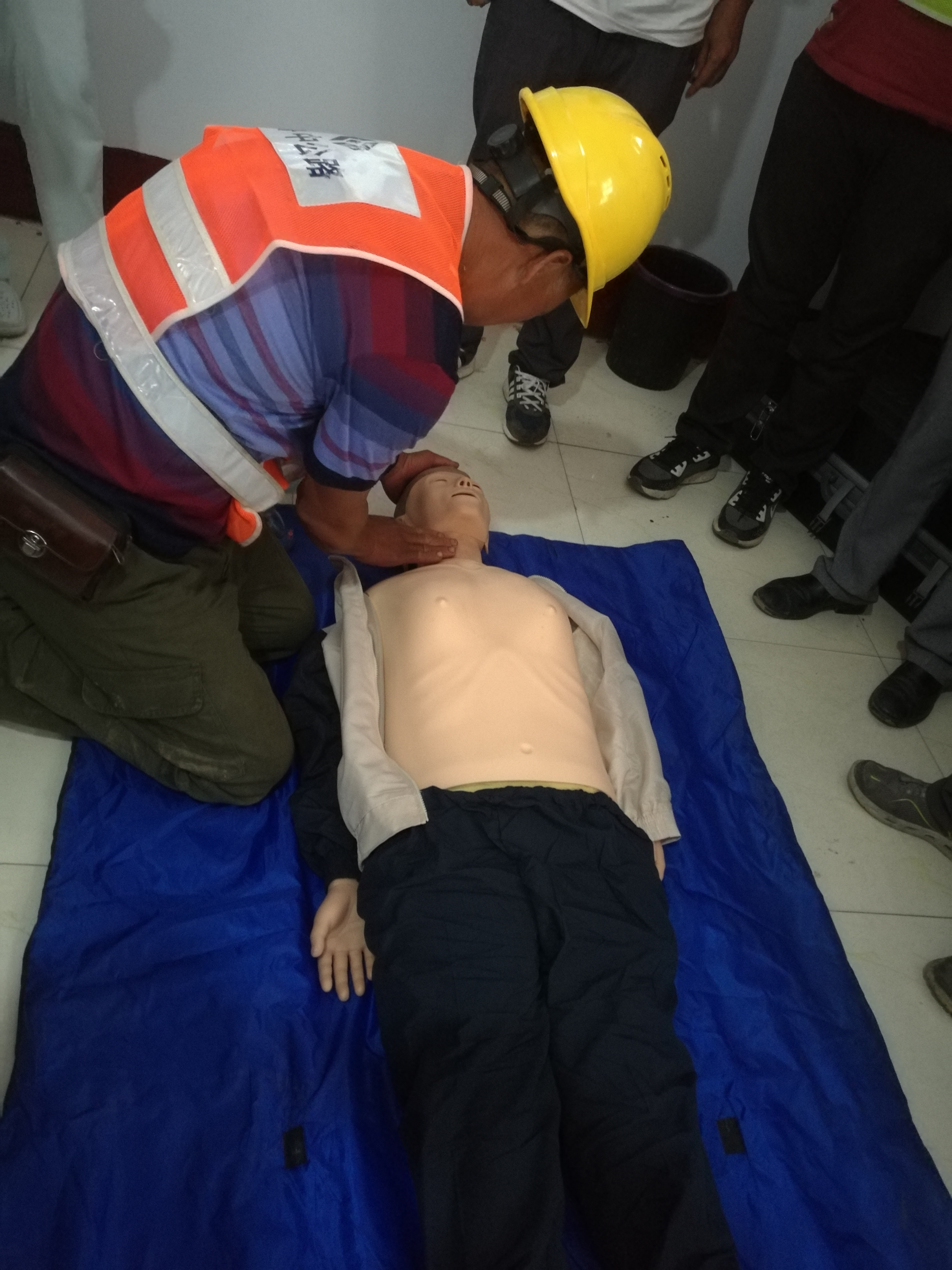一線工人現(xiàn)場(chǎng)學(xué)習(xí)急救操作要點(diǎn)