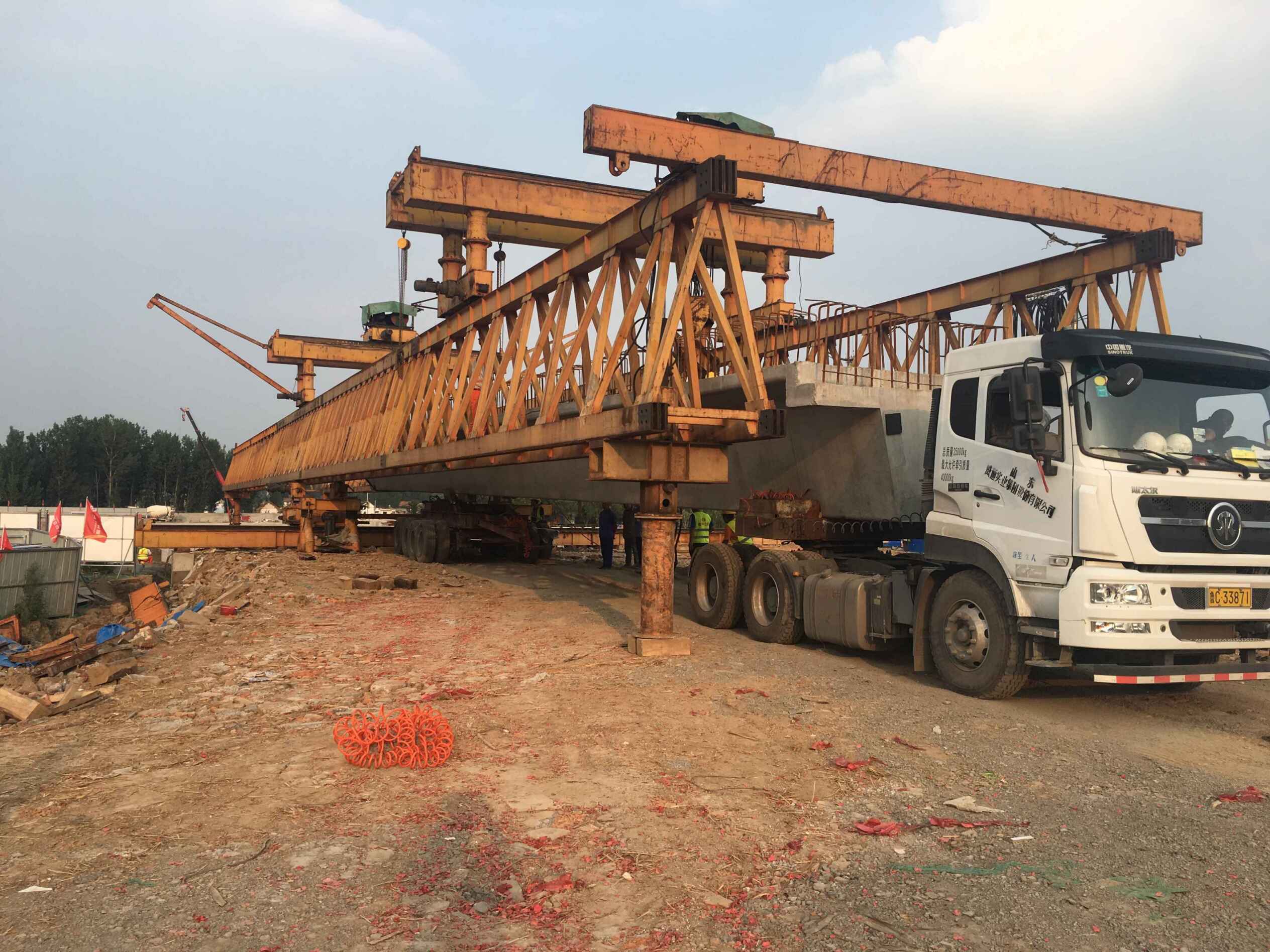 為確保架梁施工安全,項目部精心制定施工方案。同時,在架梁機械驗收合格后多次對其進行檢查,對作業(yè)人員進行班前教育,做好交底,制定應(yīng)急預(yù)案,保證了整個架梁過程安全、高效。隨著架梁設(shè)備有節(jié)奏的完成一項項動作,襯墊、落勾、試吊、起吊、推進,在一串協(xié)調(diào)而又連貫的運作之后,人民路延伸工程孝婦河橋第一片梁板穩(wěn)穩(wěn)降落在它發(fā)揮作用的位置上。