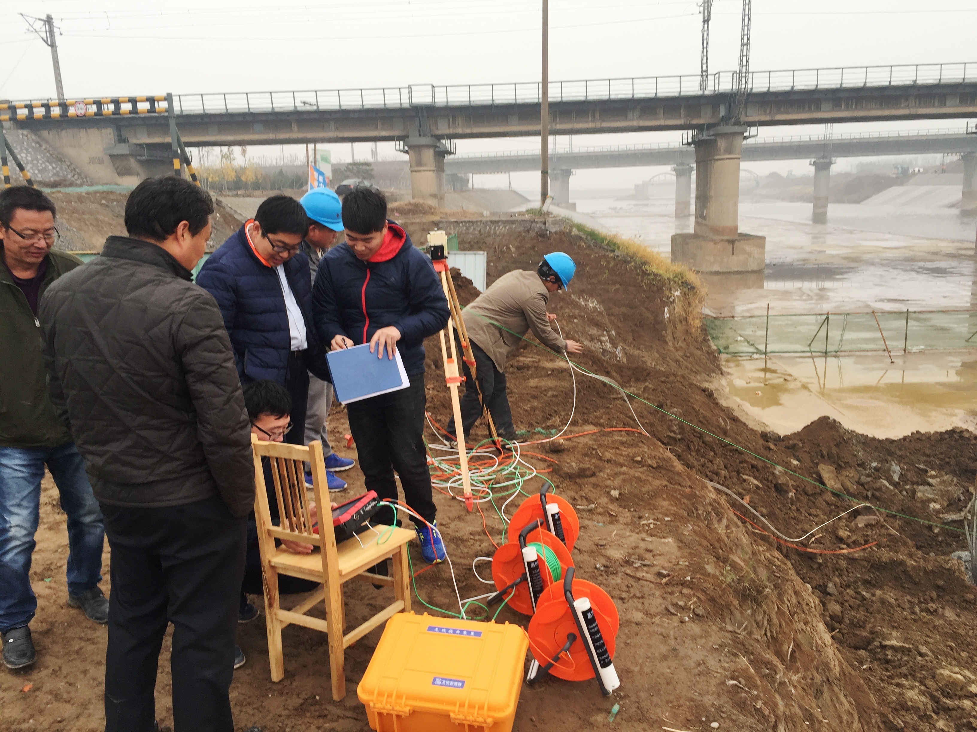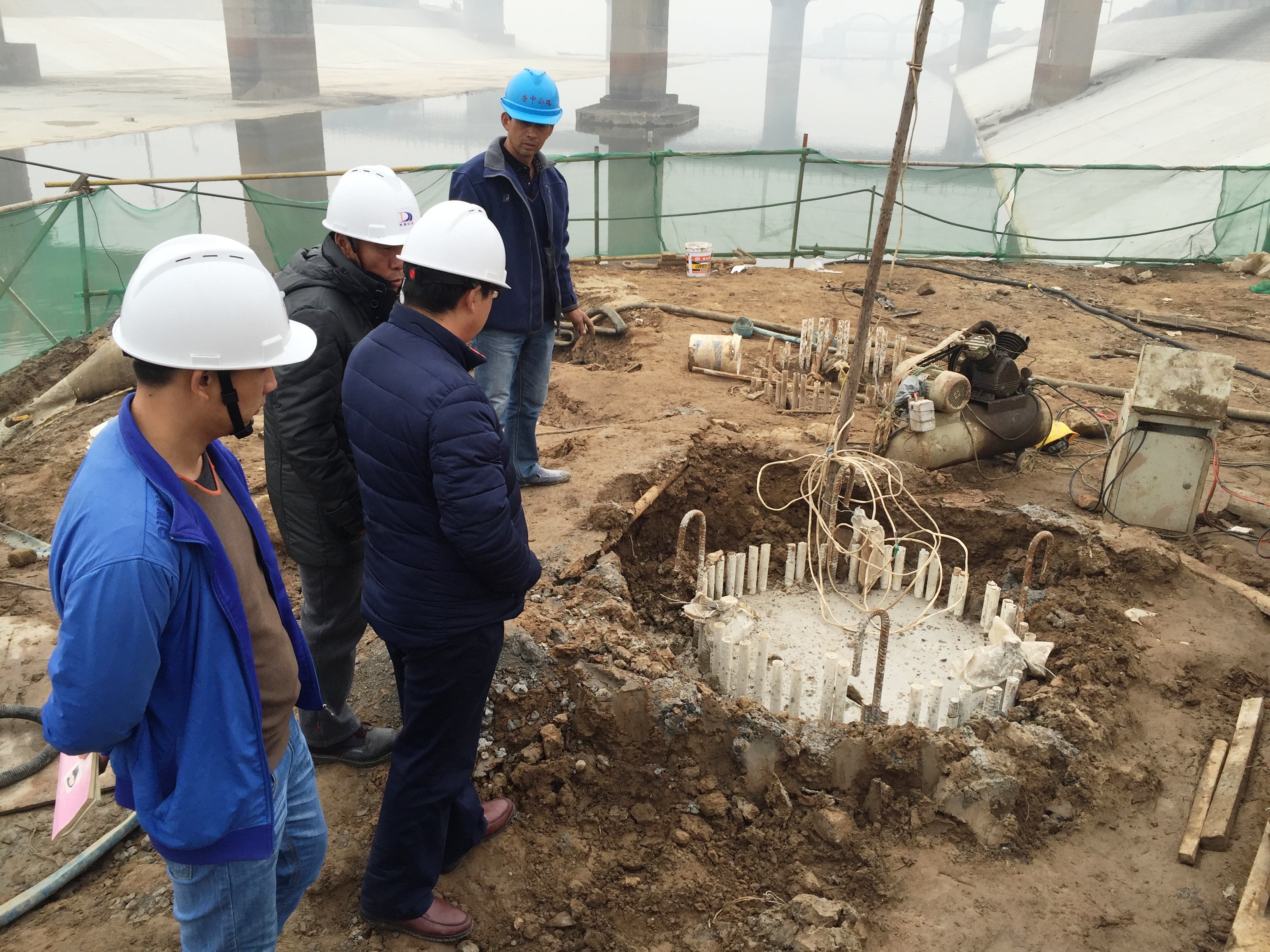 2016年11月24日,利用探孔器檢測(cè)樁基成孔質(zhì)量。