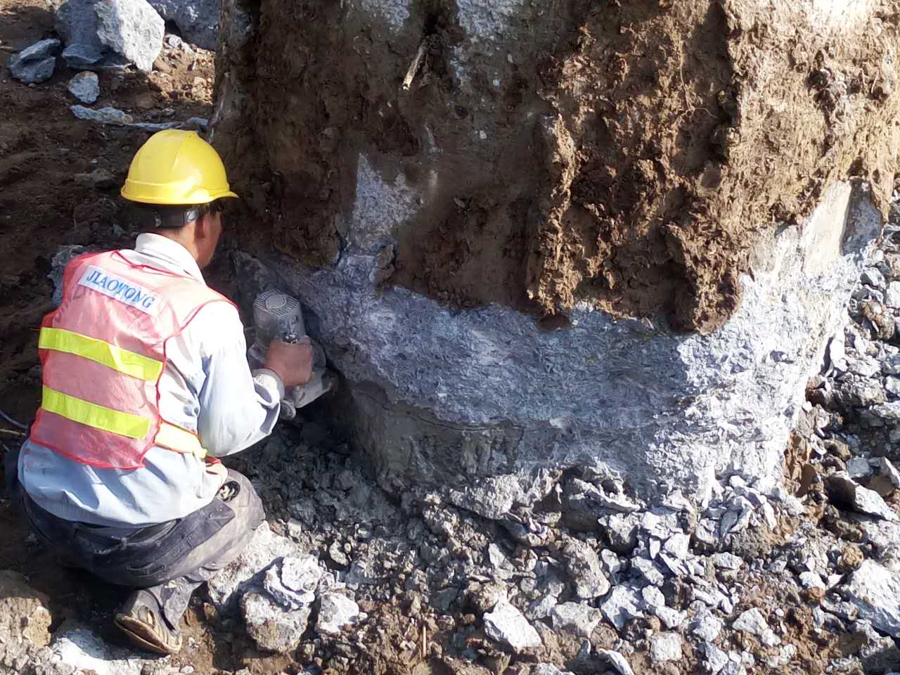2016年11月18日,工人用環(huán)切法破除樁頭。