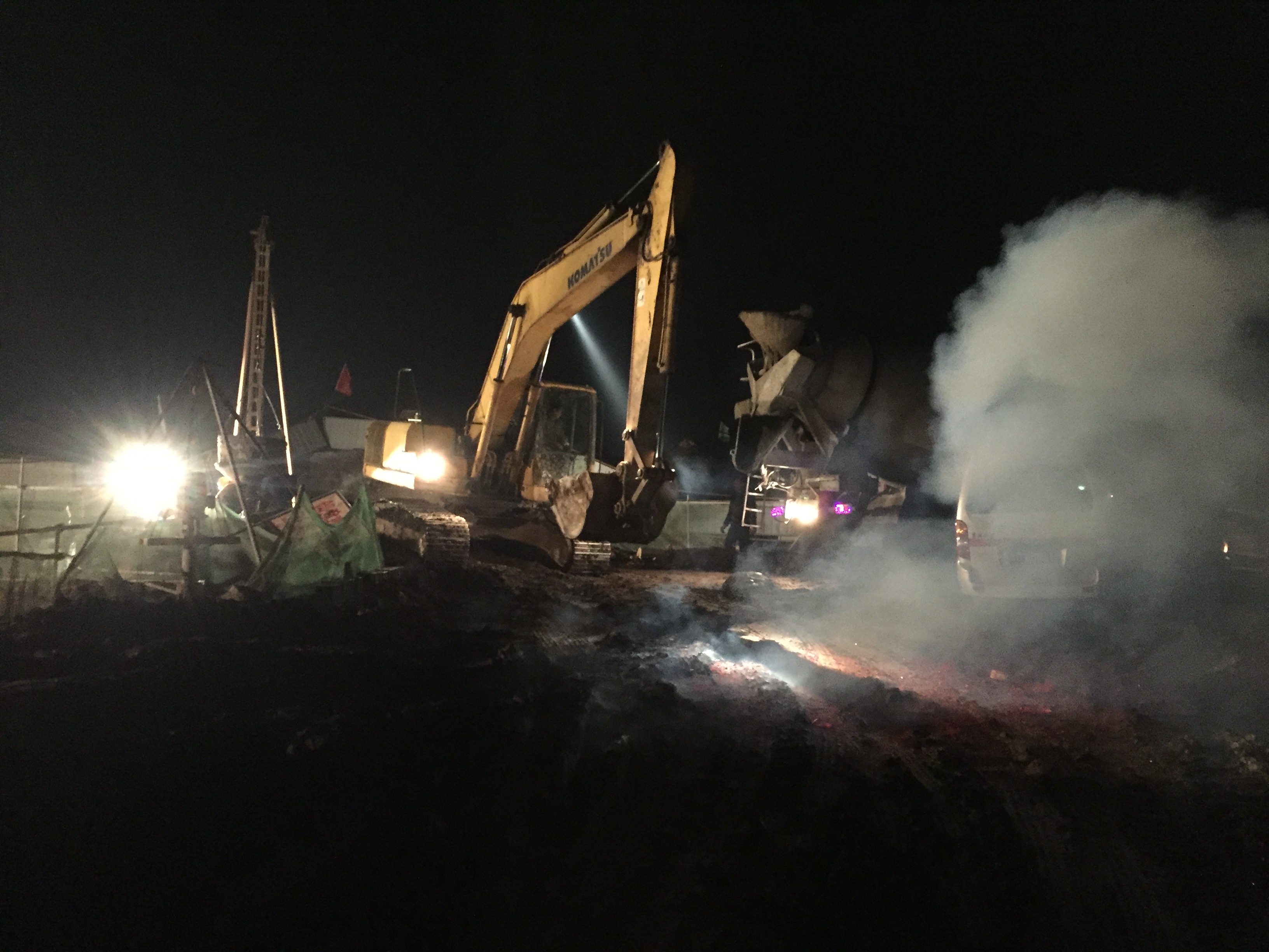 2016年11月25日23時(shí),完成了最后一顆樁基的灌注。
