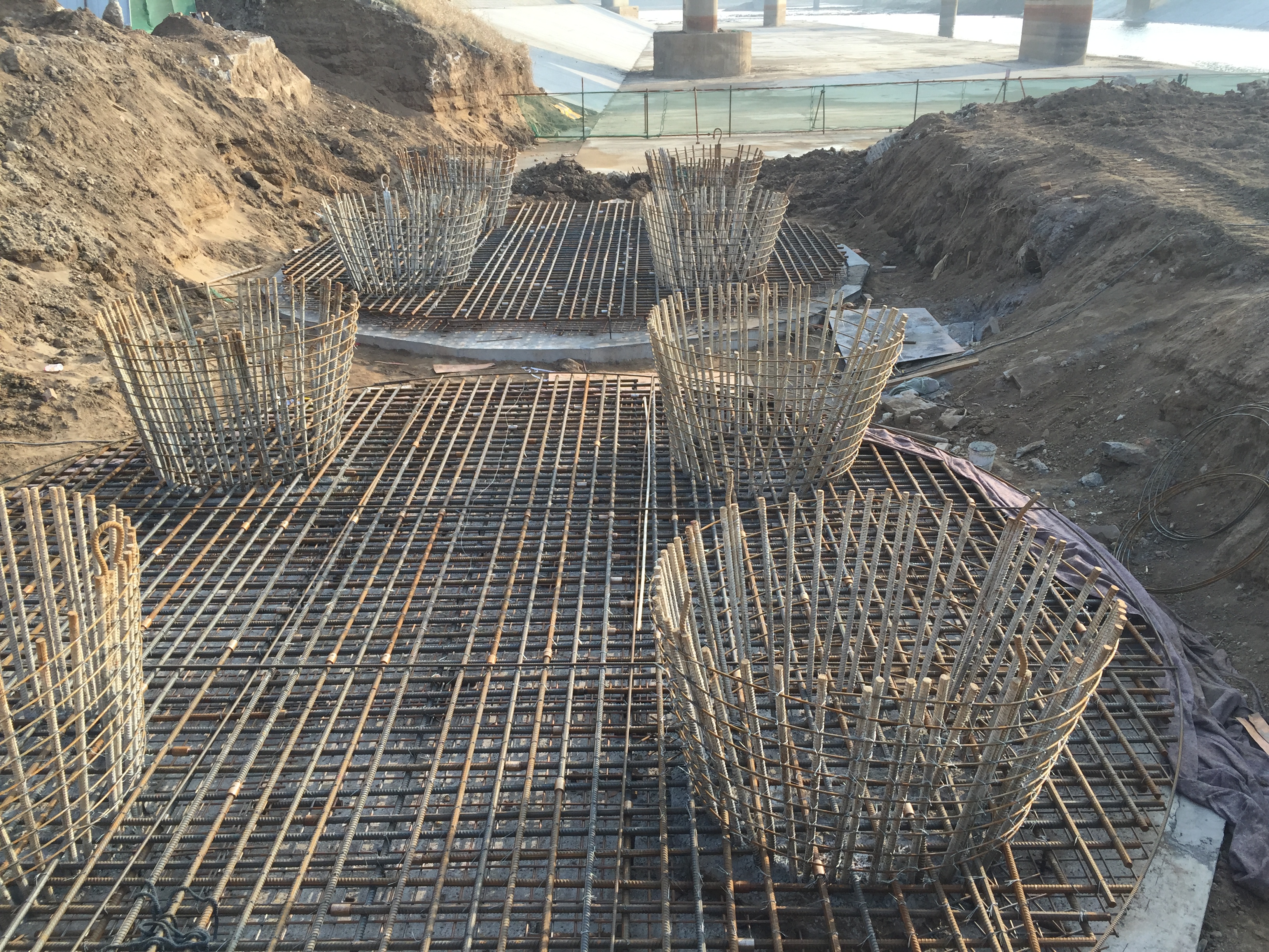 2016年11月30日,圓承臺(tái)綁扎鋼筋后猶如一朵朵盛開(kāi)的鮮花。