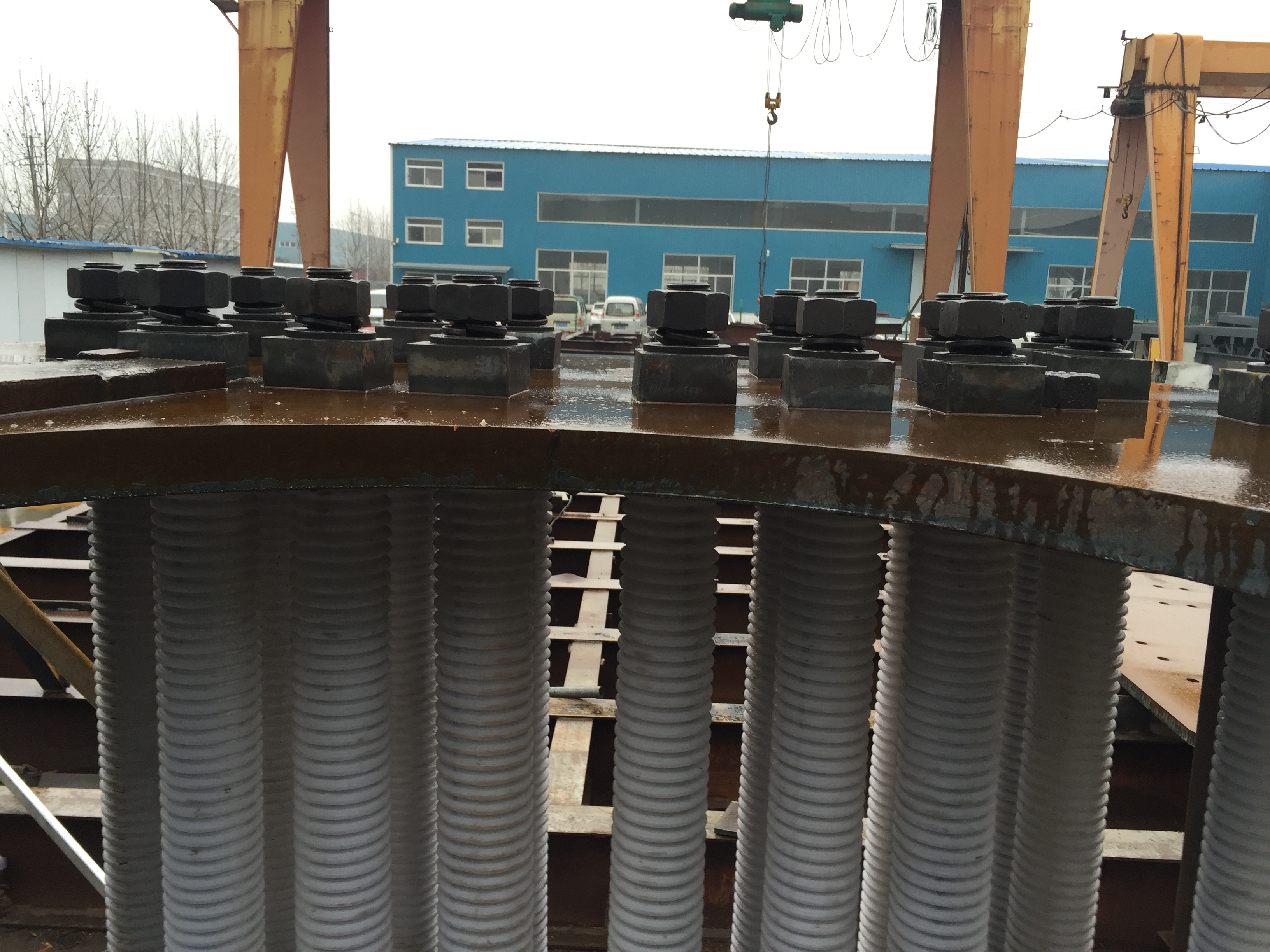 2016年12月13日,組裝起來(lái)的預(yù)埋鋼板框架,高強(qiáng)度螺栓密集排列,單個(gè)主塔就需要58套。