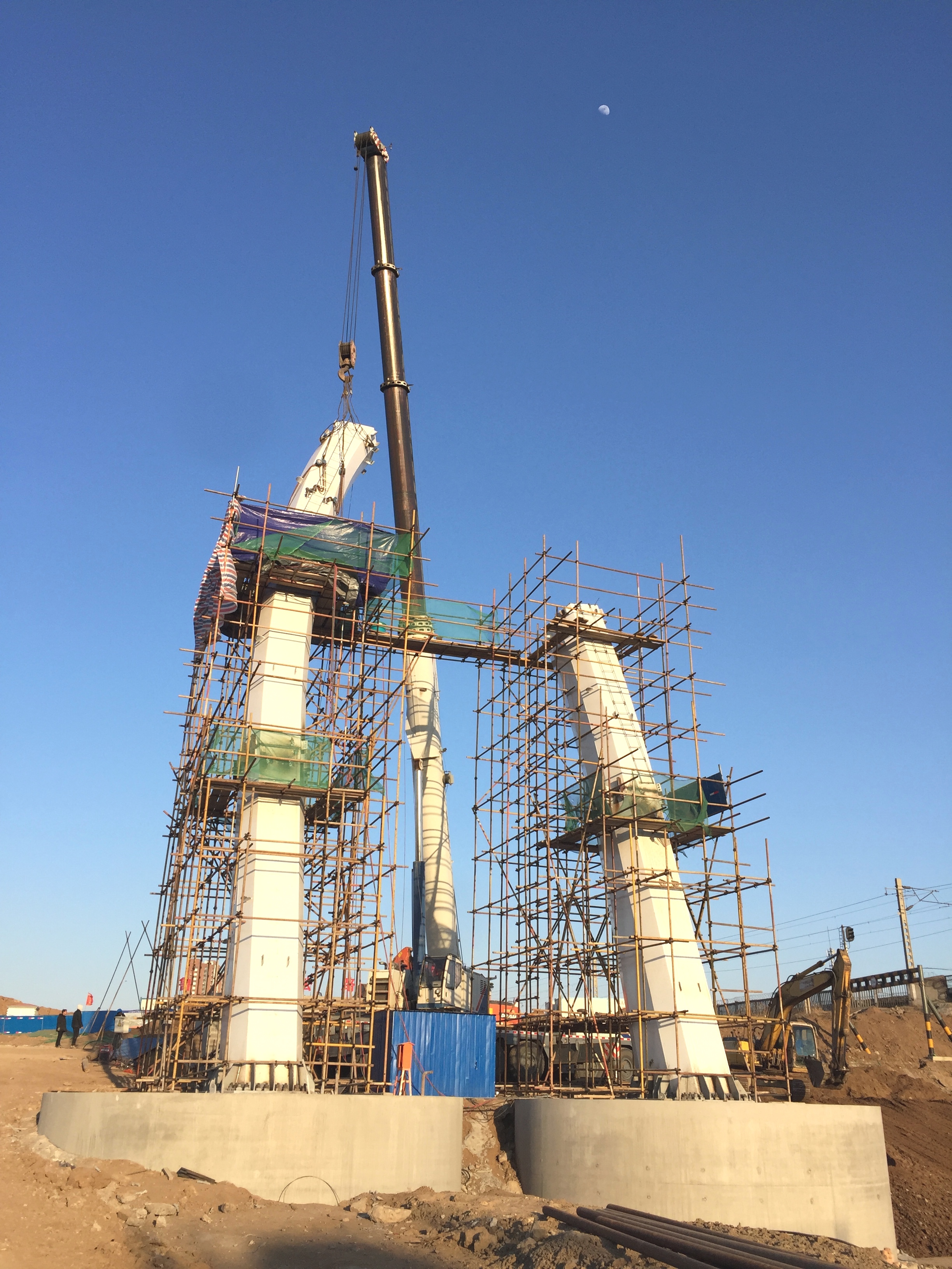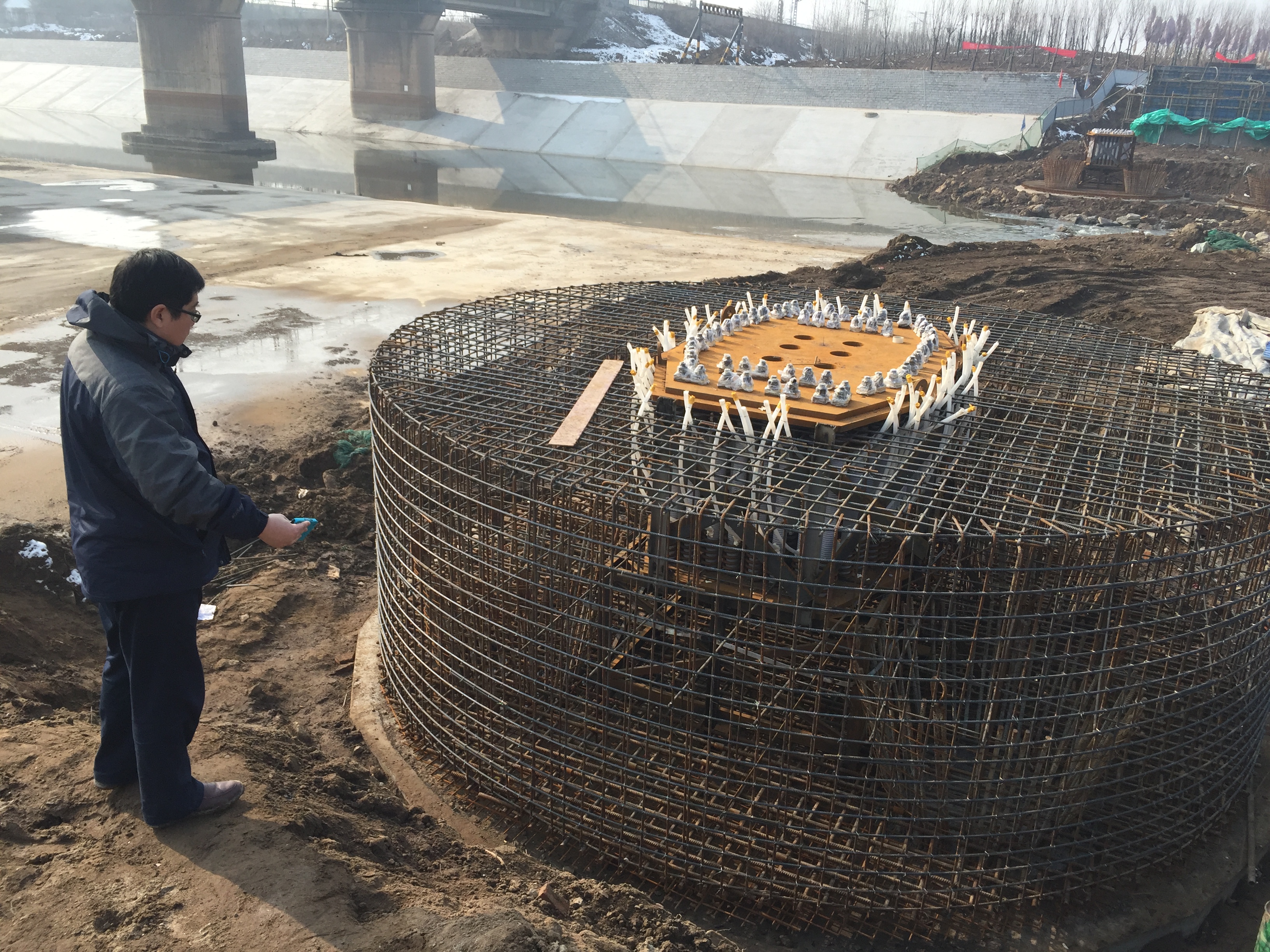 2016年12月20日,主塔預(yù)埋件安裝就位檢測(cè)。