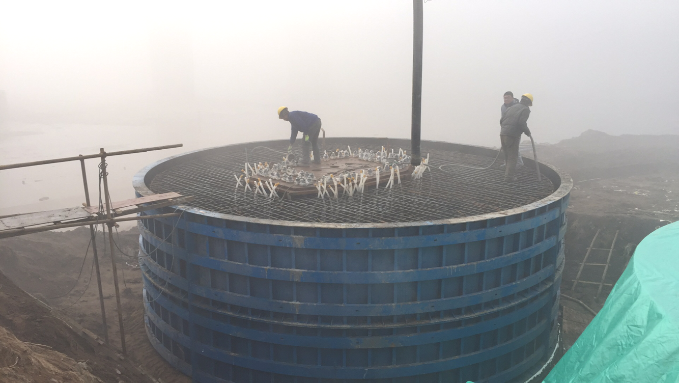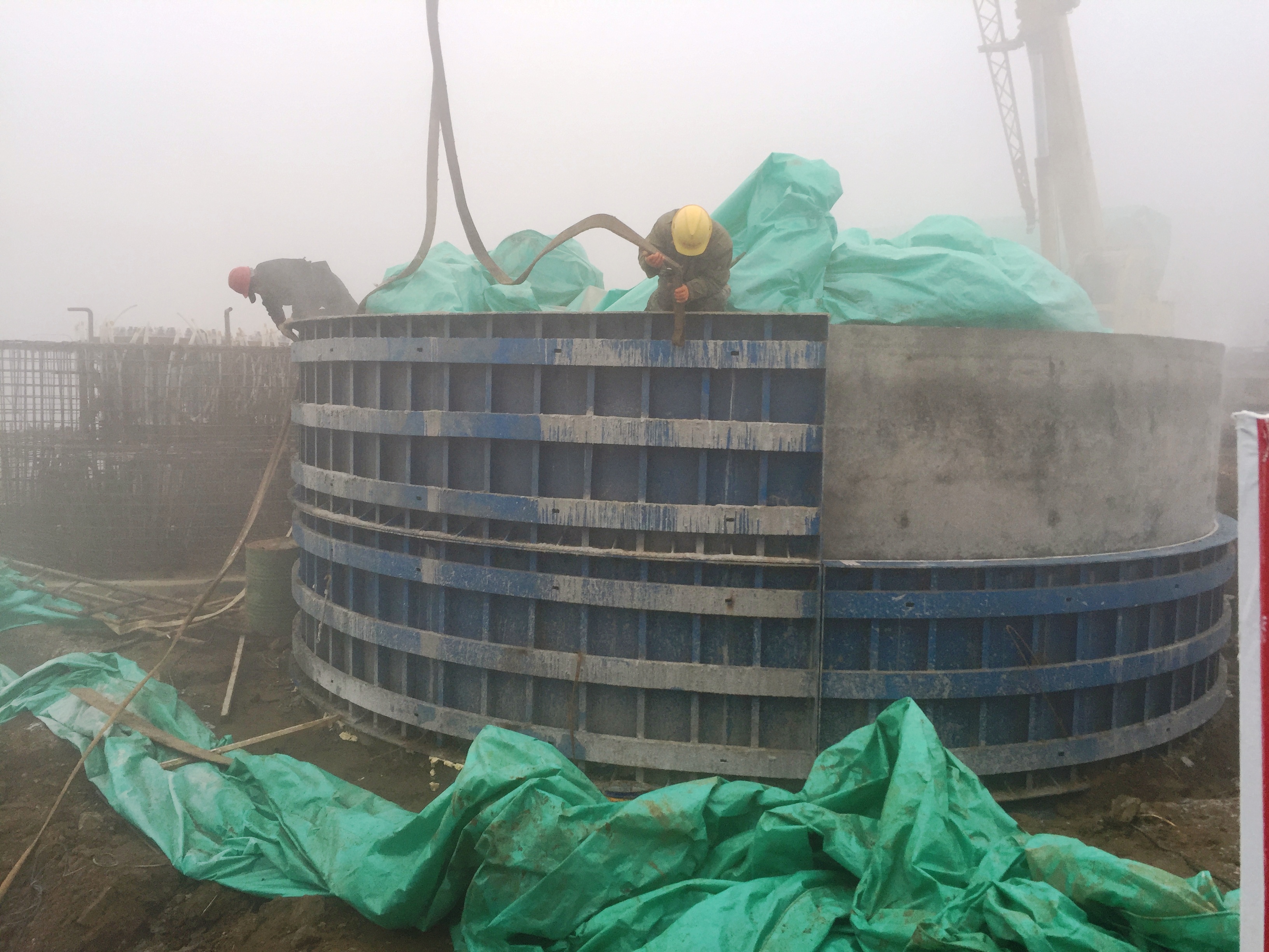 2017年1月14日,久違的藍(lán)天下,我們完成了最后一個(gè)圓承臺(tái)的澆筑。