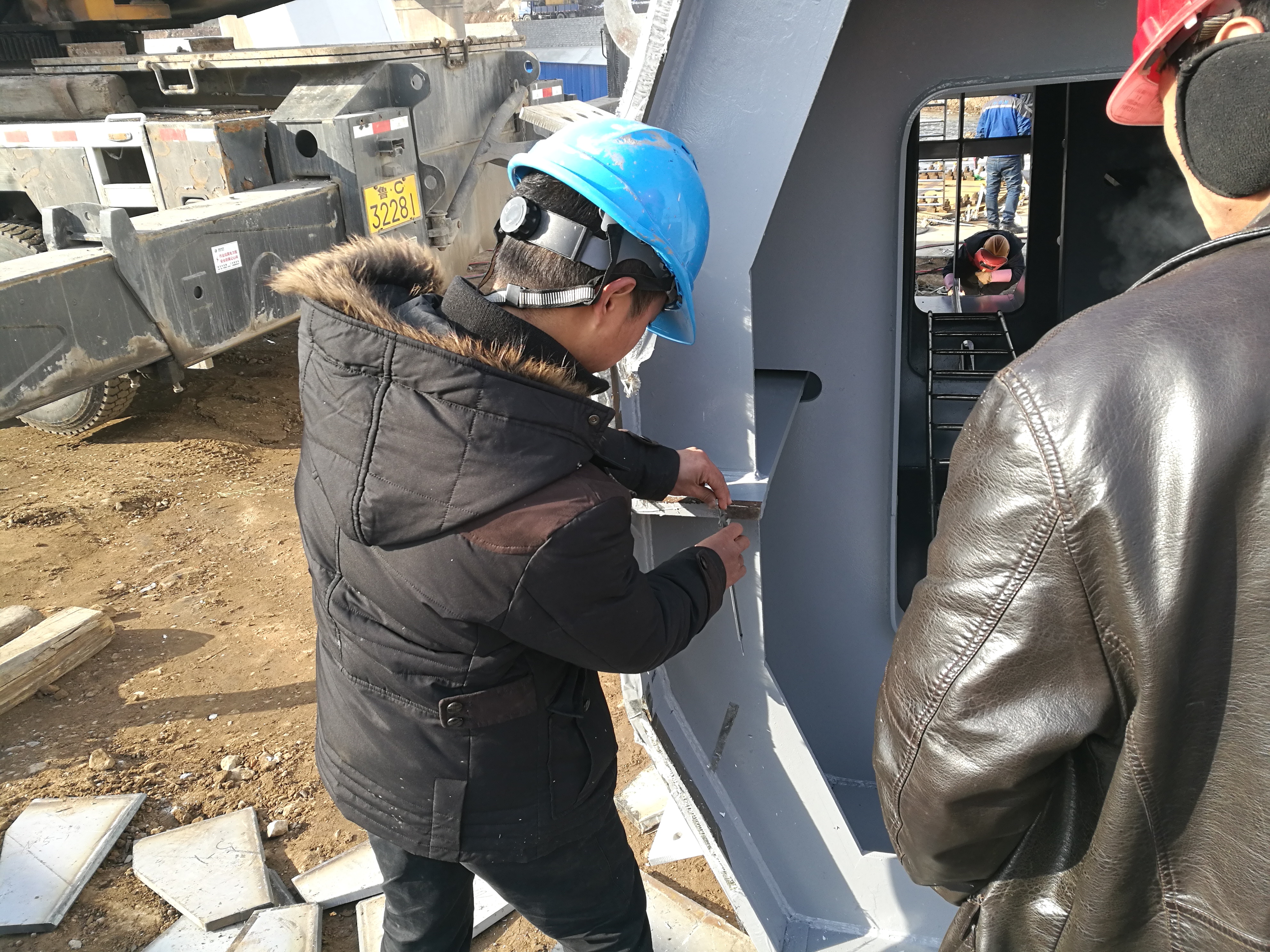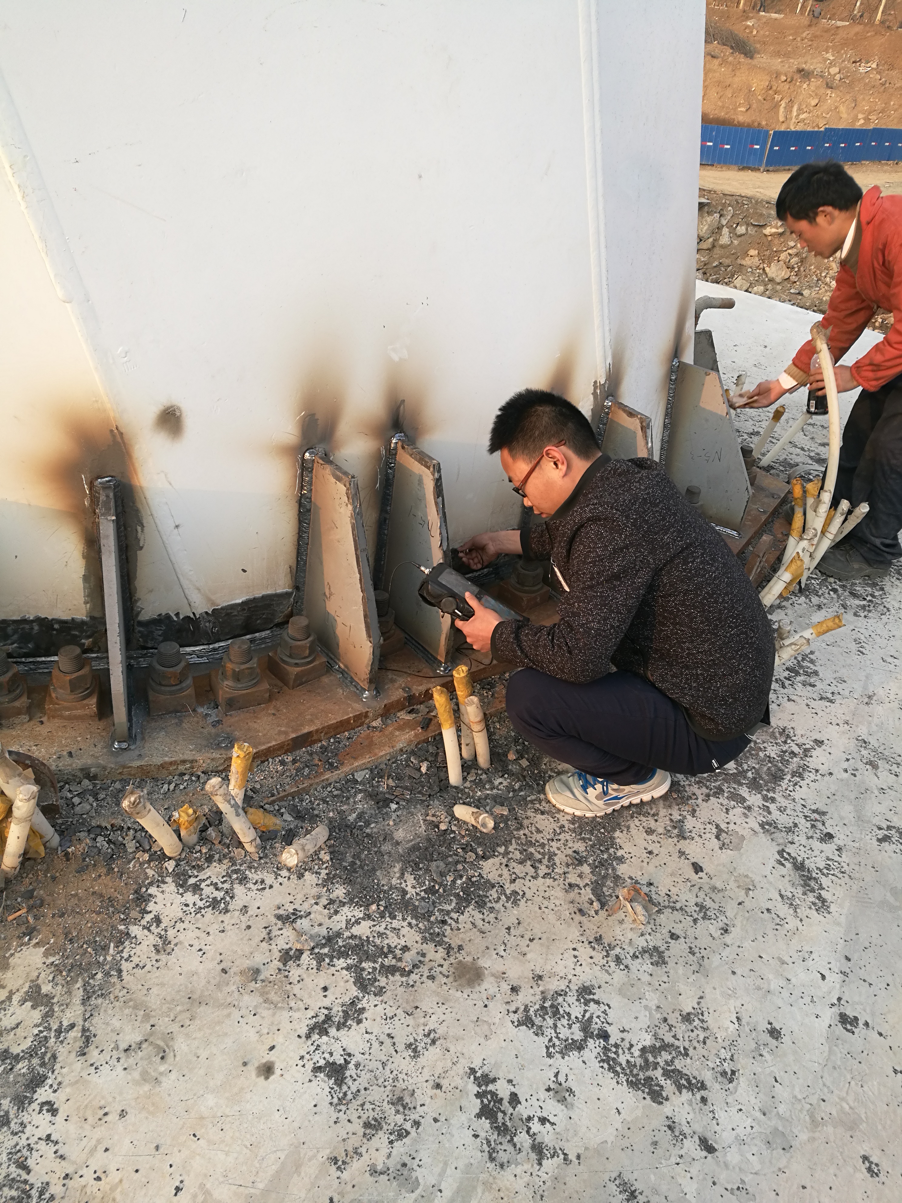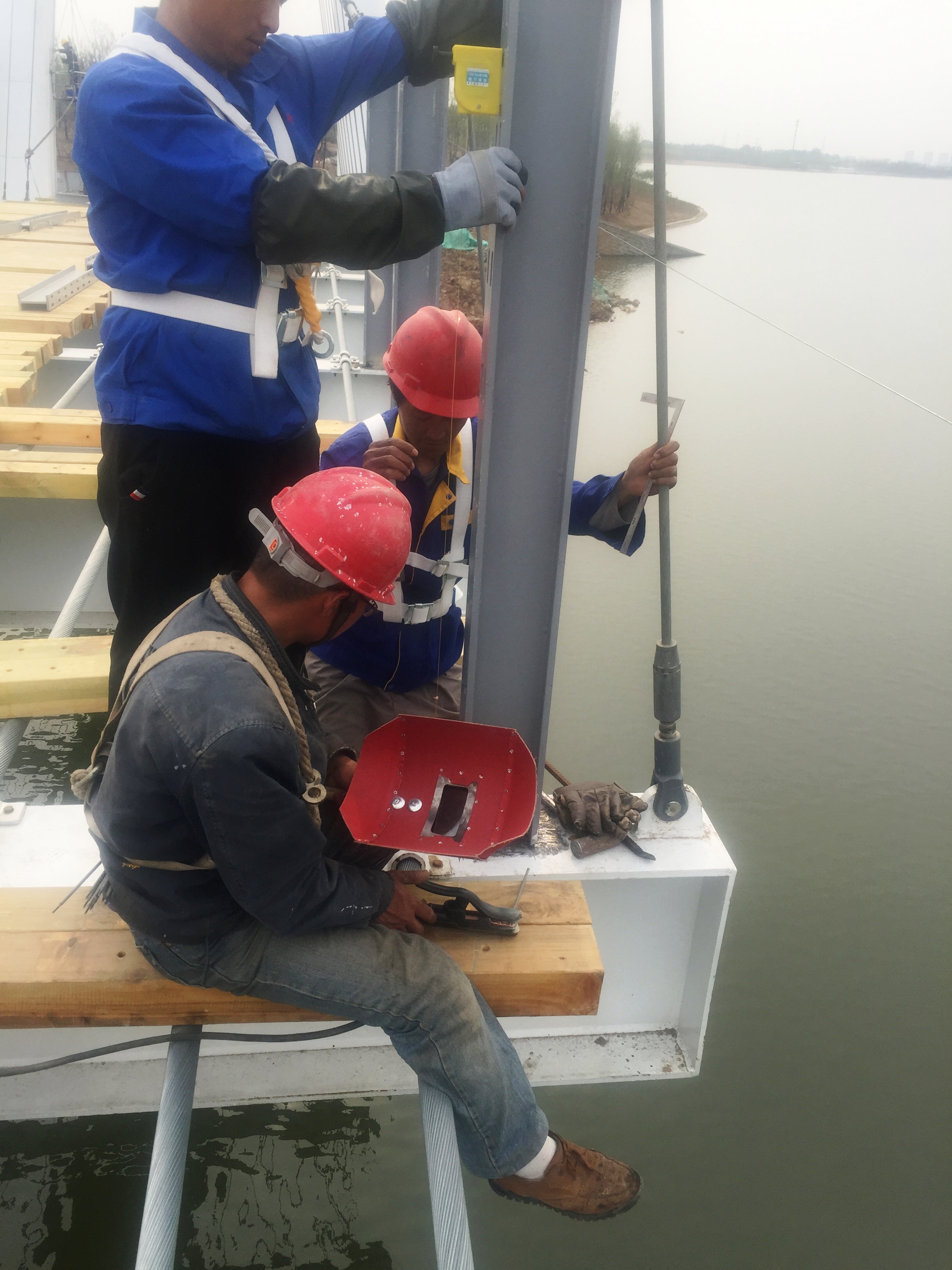 2017年2月27日,鋼主塔現(xiàn)場(chǎng)探傷檢測(cè)。