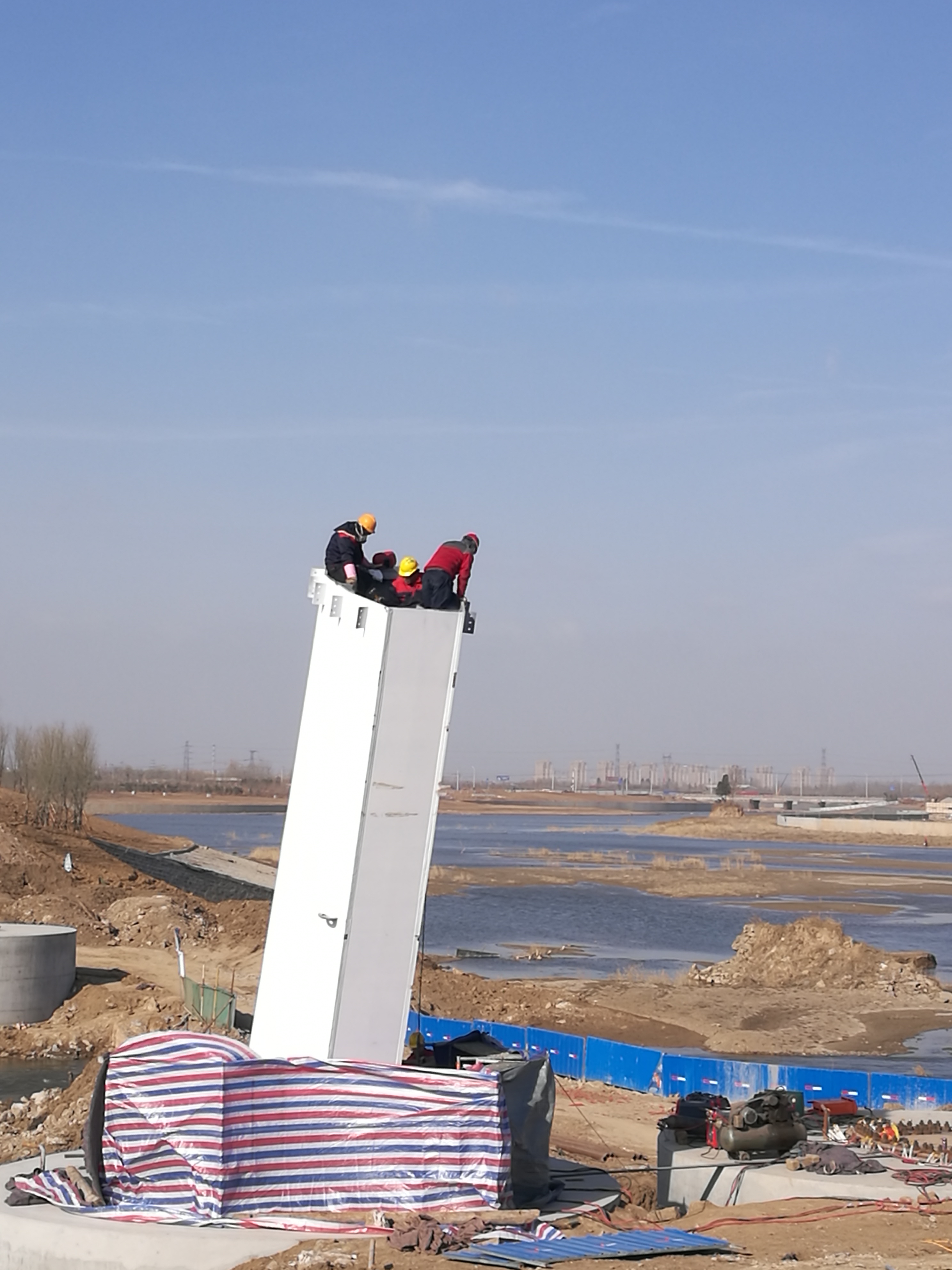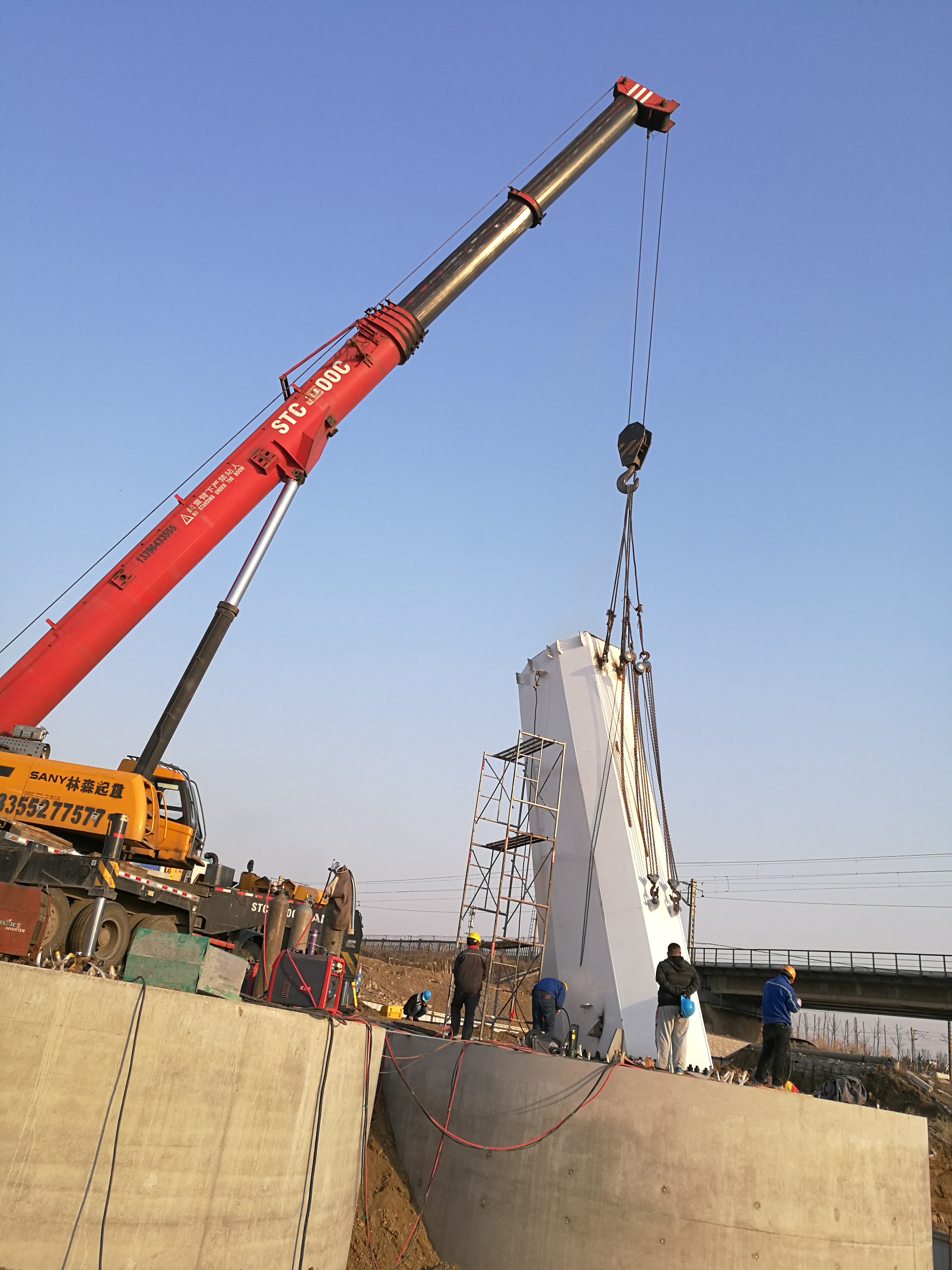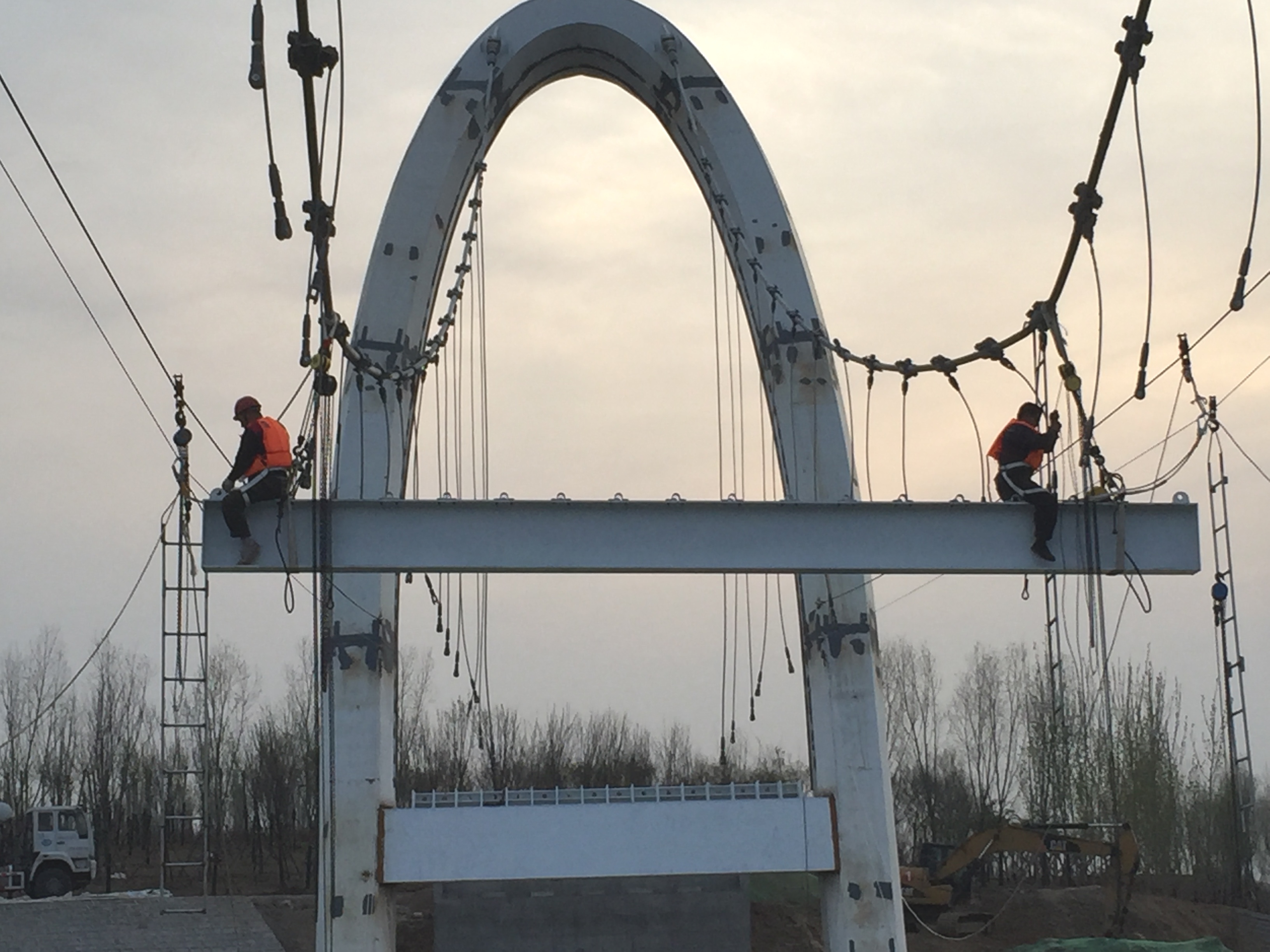 2017年2月27日,鋼主塔現(xiàn)場(chǎng)探傷檢測(cè)。