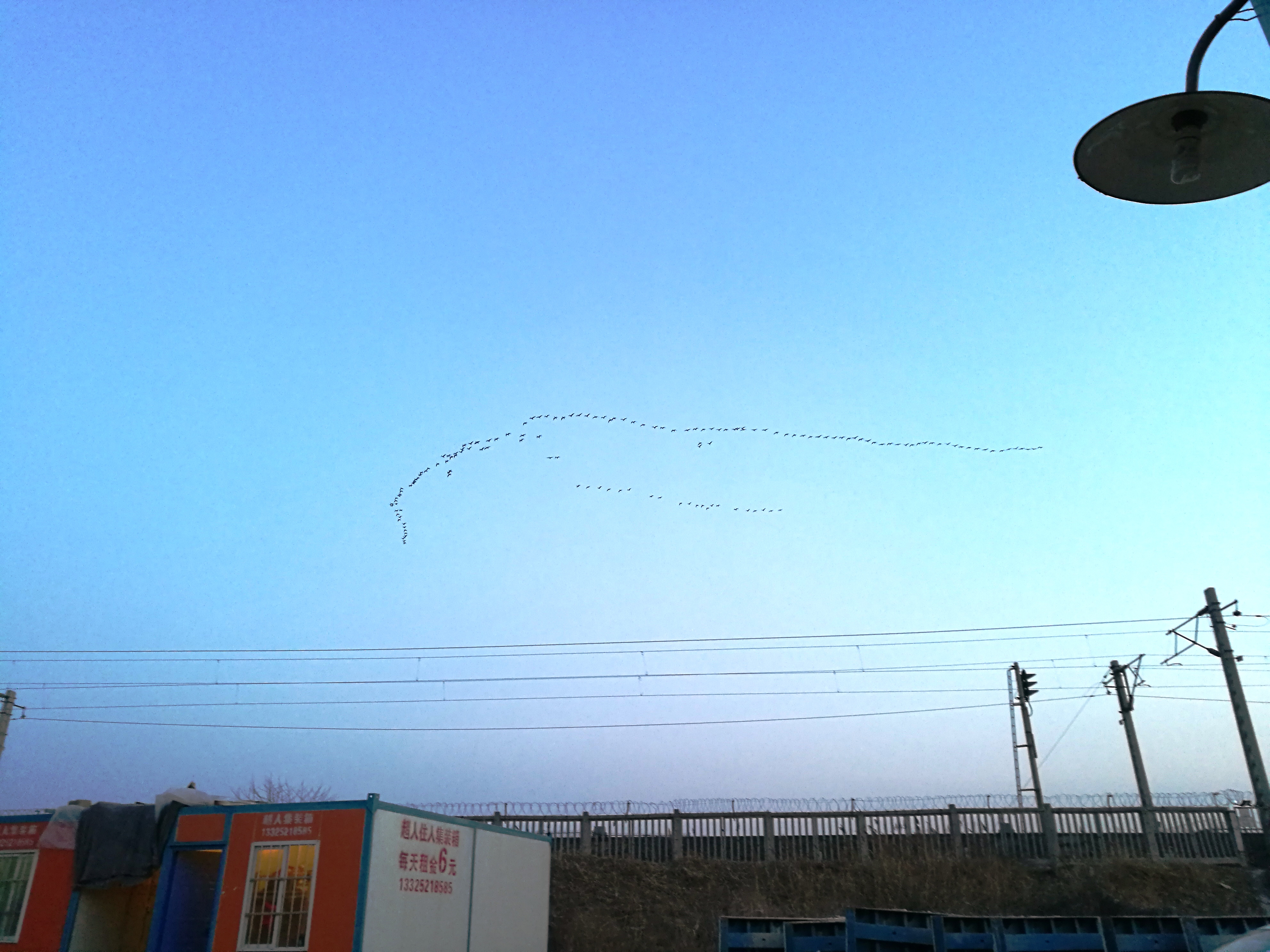 2017年2月25日落日余暉下,懸索橋迎來(lái)了北歸的大雁。
