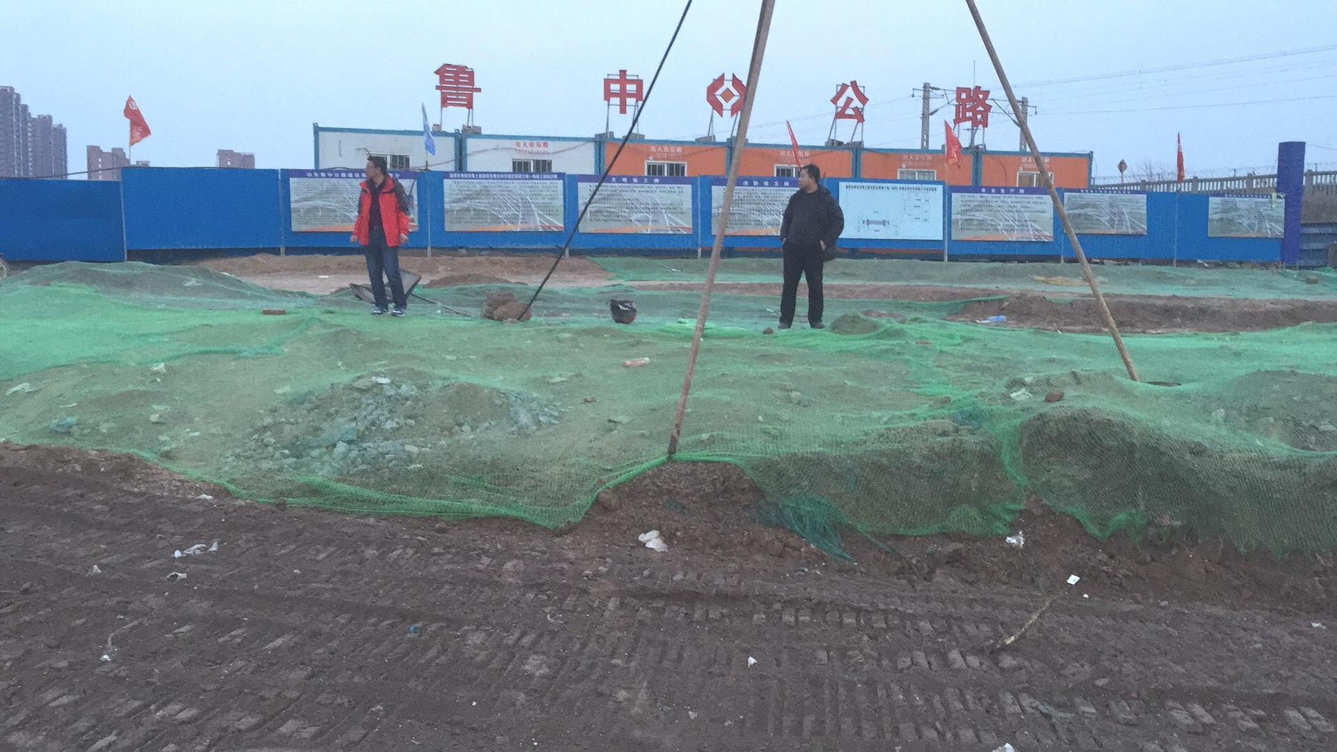 2017年3月10日,施工現(xiàn)場(chǎng)覆蓋防塵網(wǎng)。