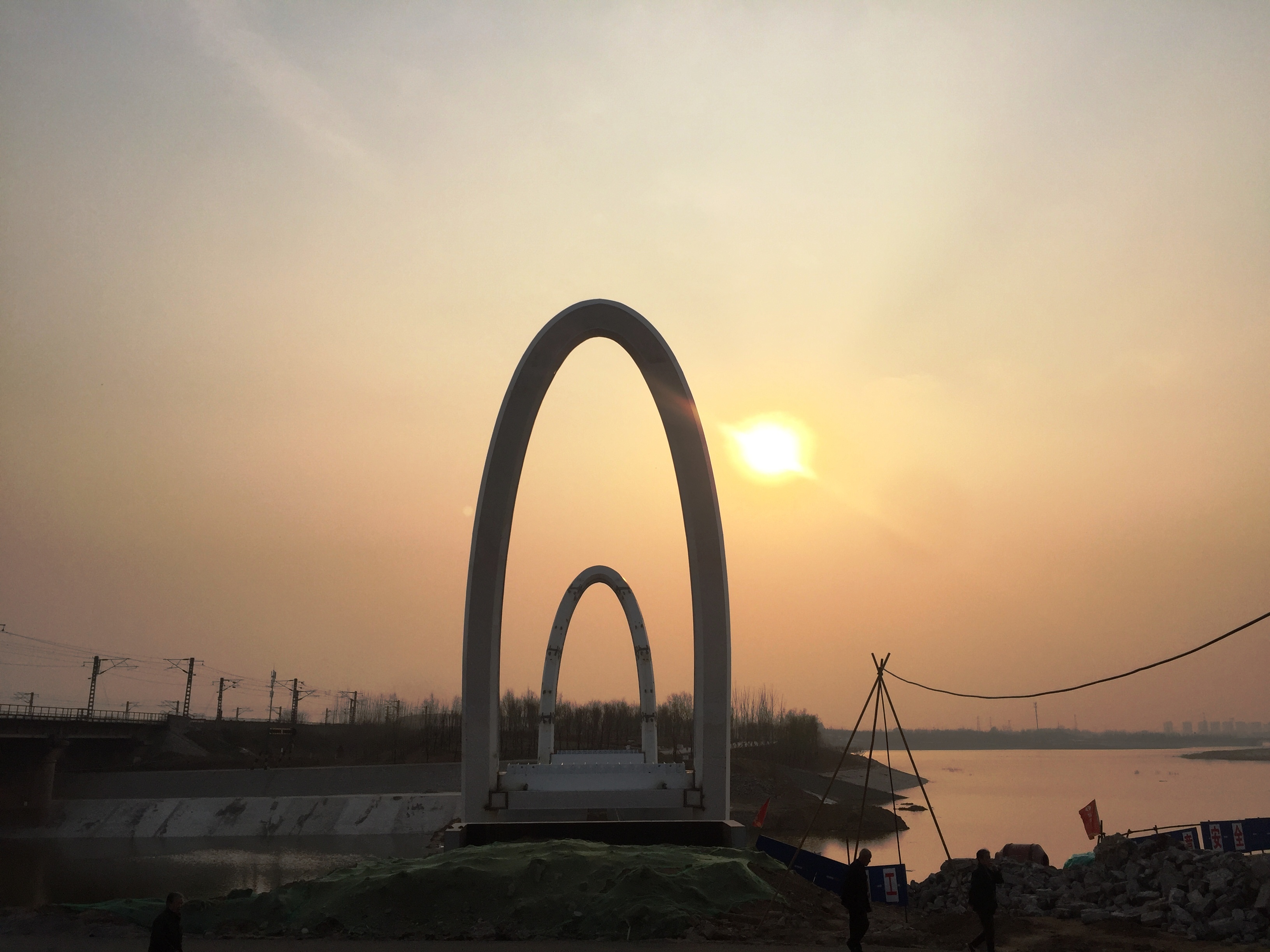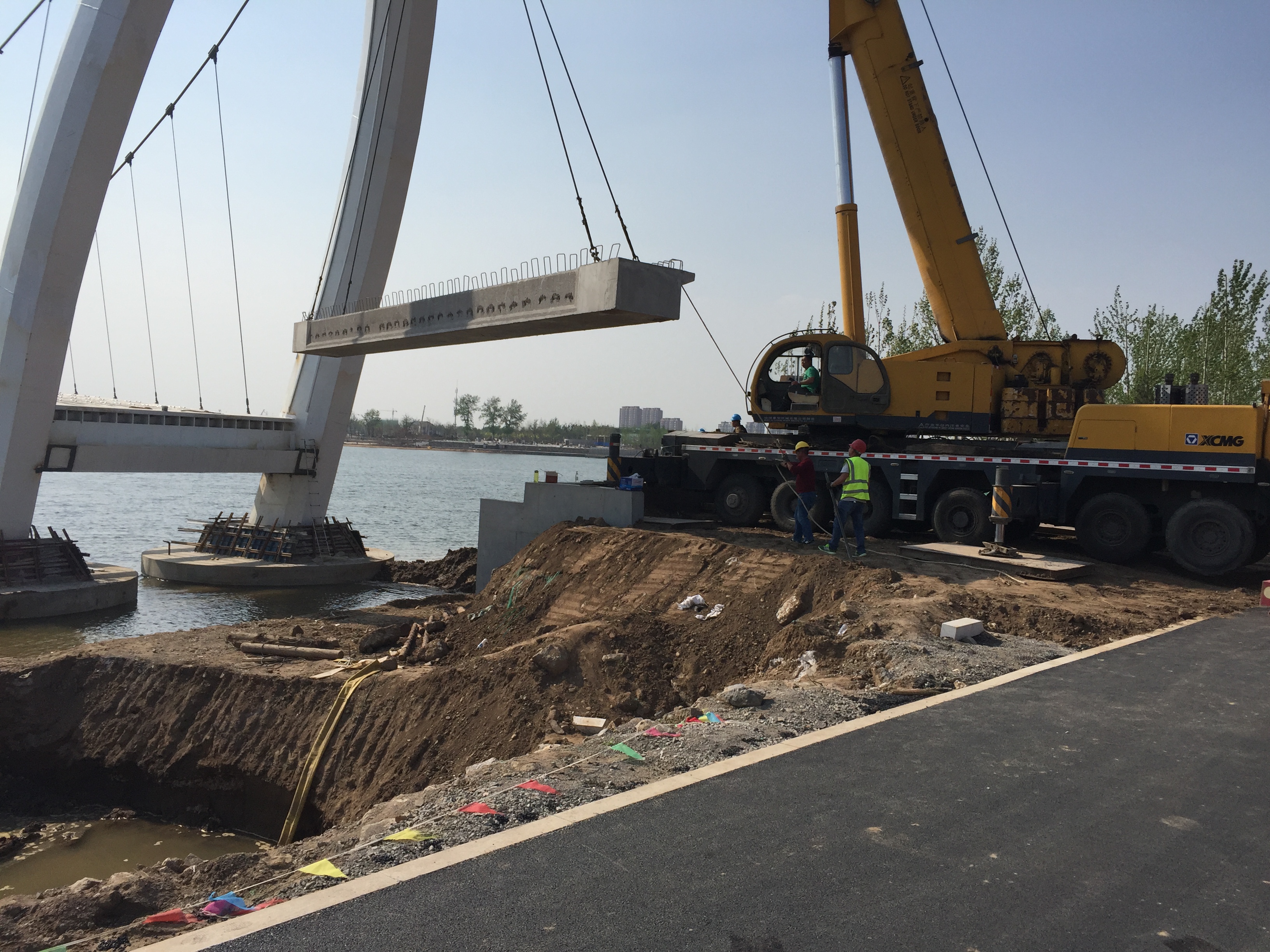 2017年4月22日,晨曦中引梁橋板開(kāi)始吊裝。