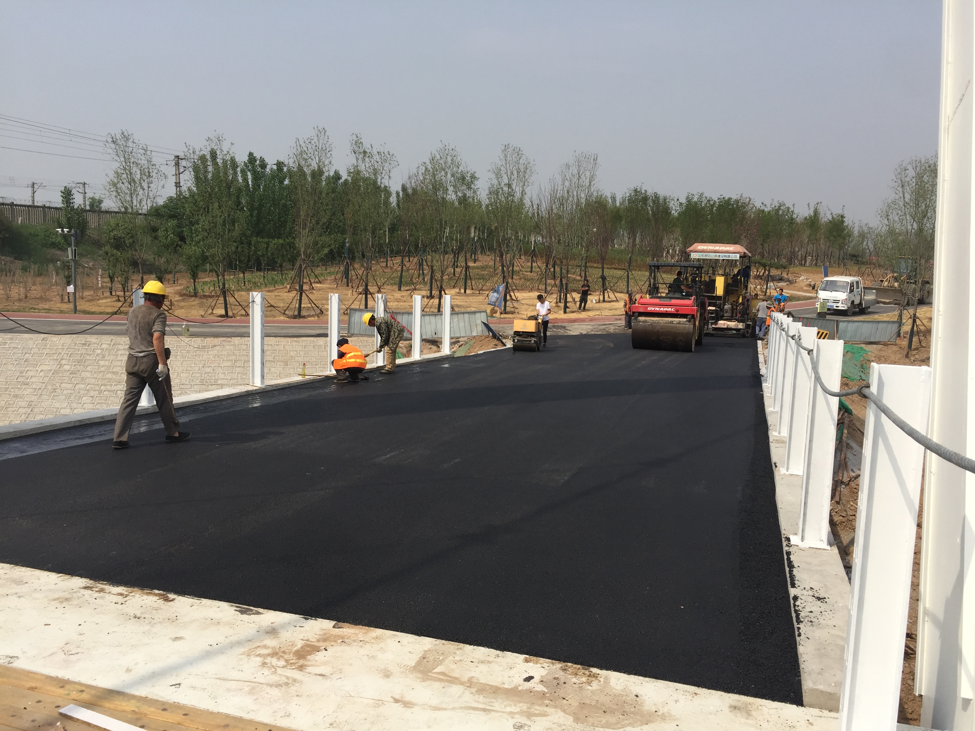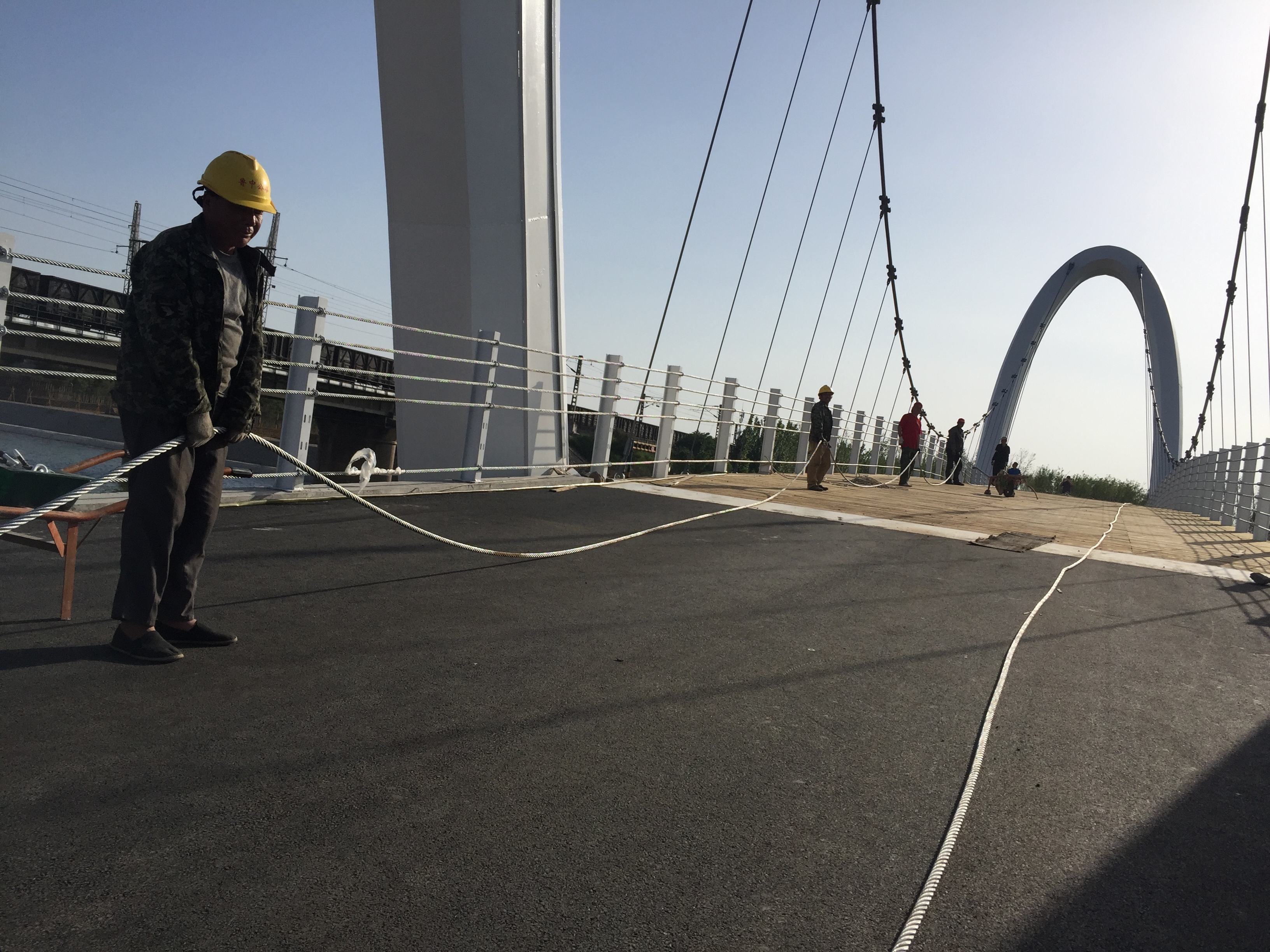 2017年5月10日,懸索橋連接段瀝青攤鋪。