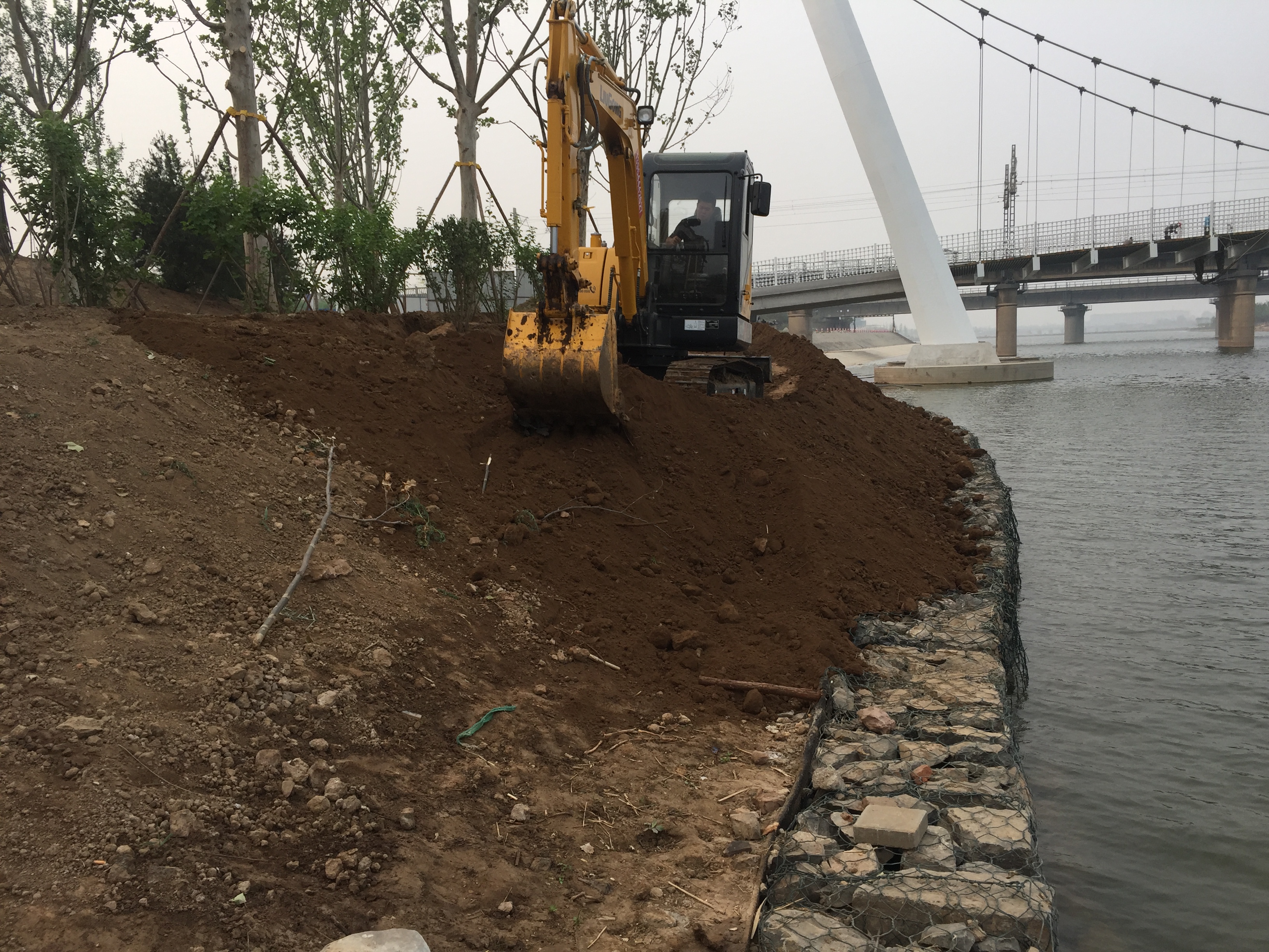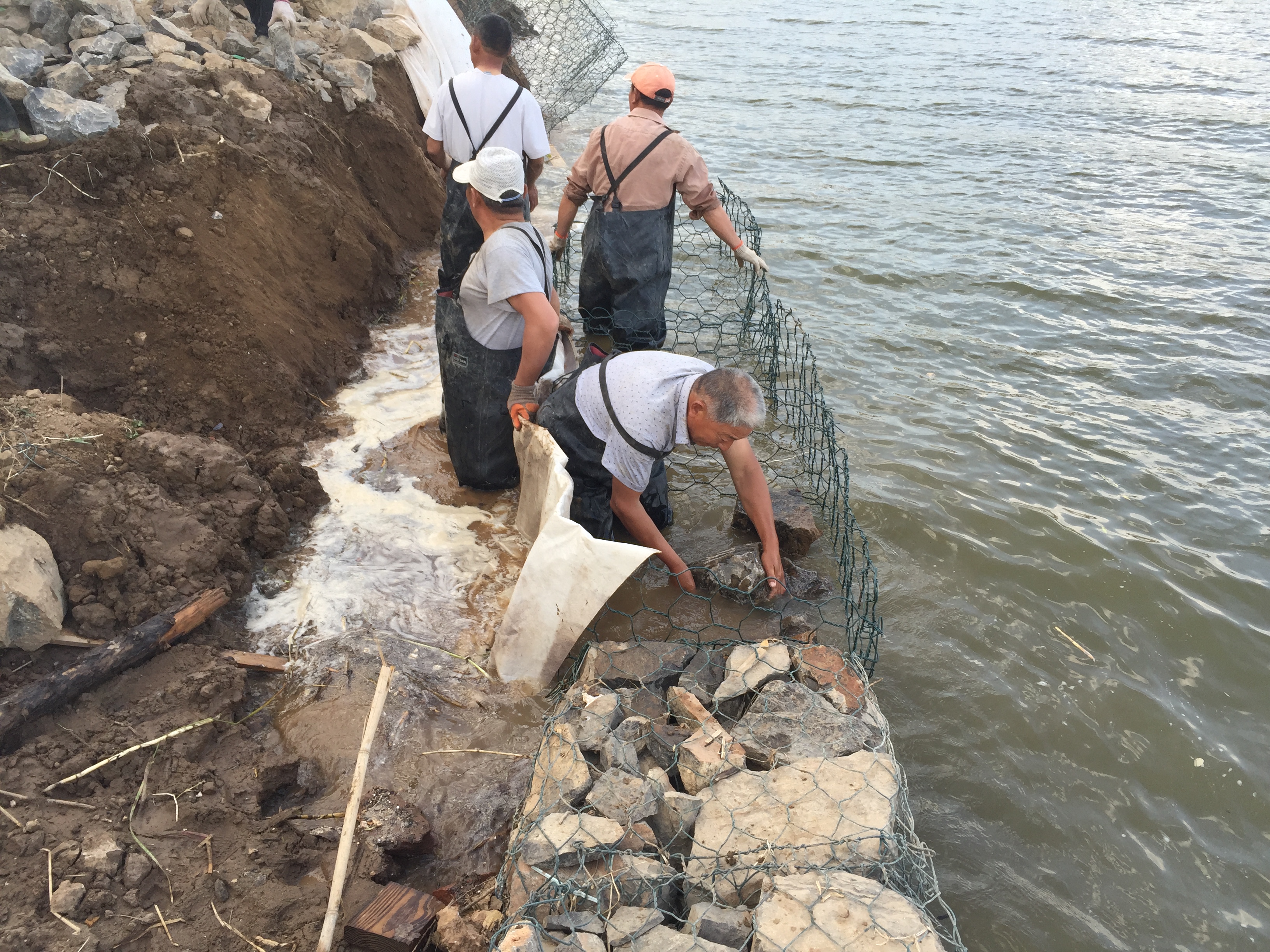 2017年4月29日,河岸進(jìn)行木樁防護(hù)。
