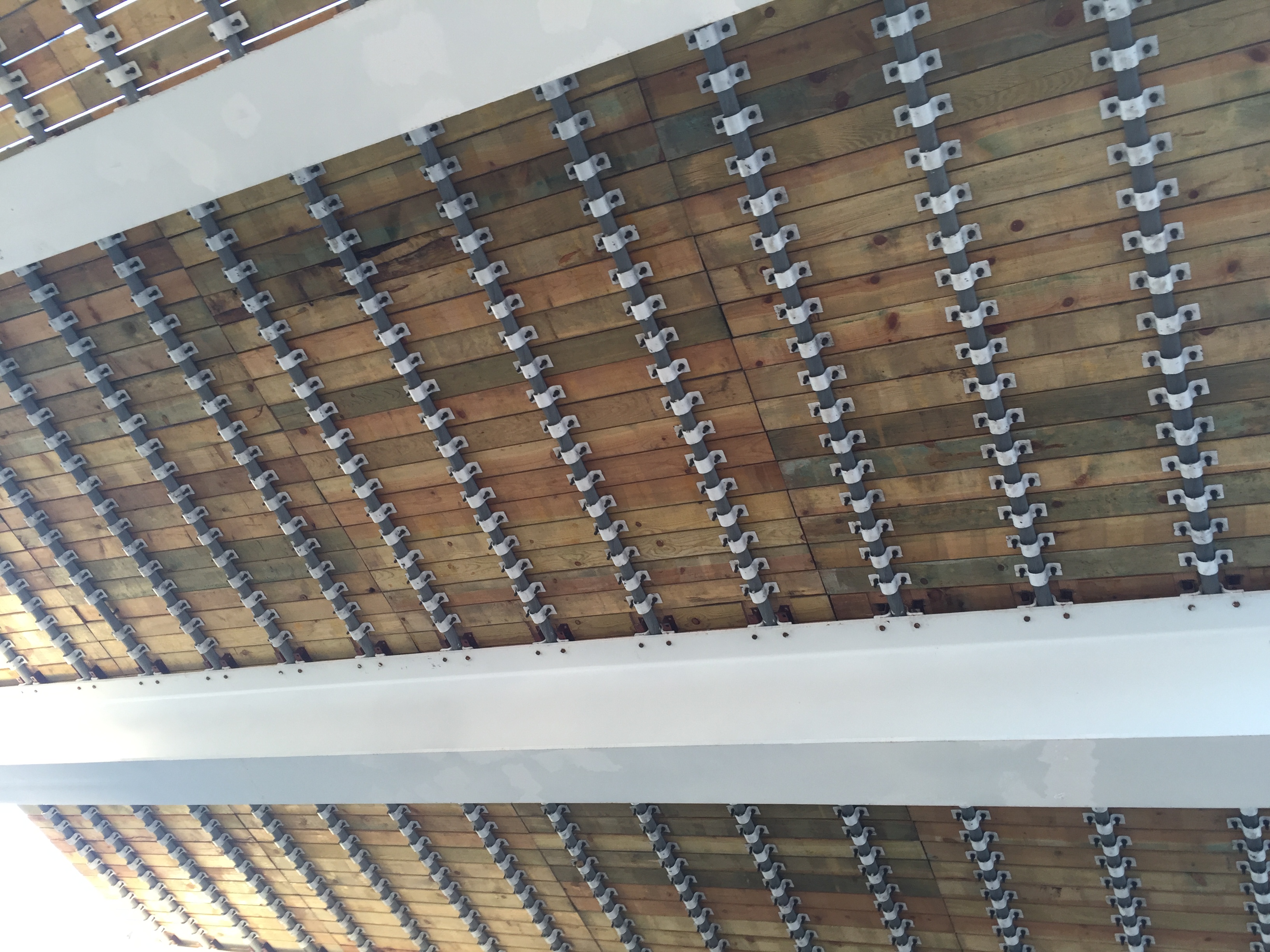 2017年5月9日,懸索橋防腐木鋪裝接近尾聲。