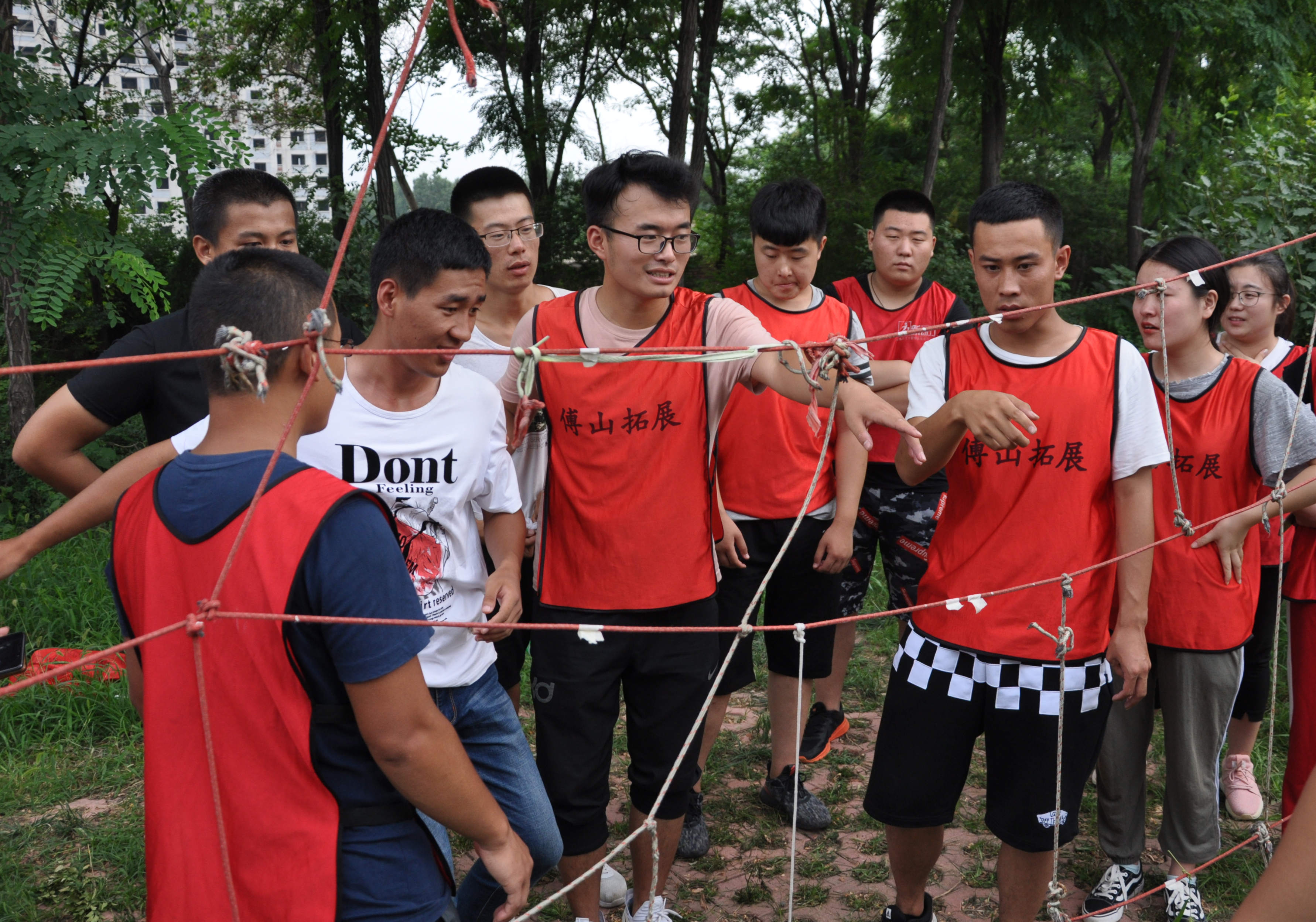 內(nèi)訓(xùn)結(jié)束后,所有新員工拉開了室外素質(zhì)拓展訓(xùn)練的序幕。教練將全體隊(duì)員分為兩個(gè)小隊(duì),并積極展開了團(tuán)隊(duì)建設(shè)活動(dòng),各隊(duì)通過(guò)集思廣益,積極建言獻(xiàn)策,最終“勇者隊(duì)”和“前進(jìn)隊(duì)”應(yīng)運(yùn)而生。