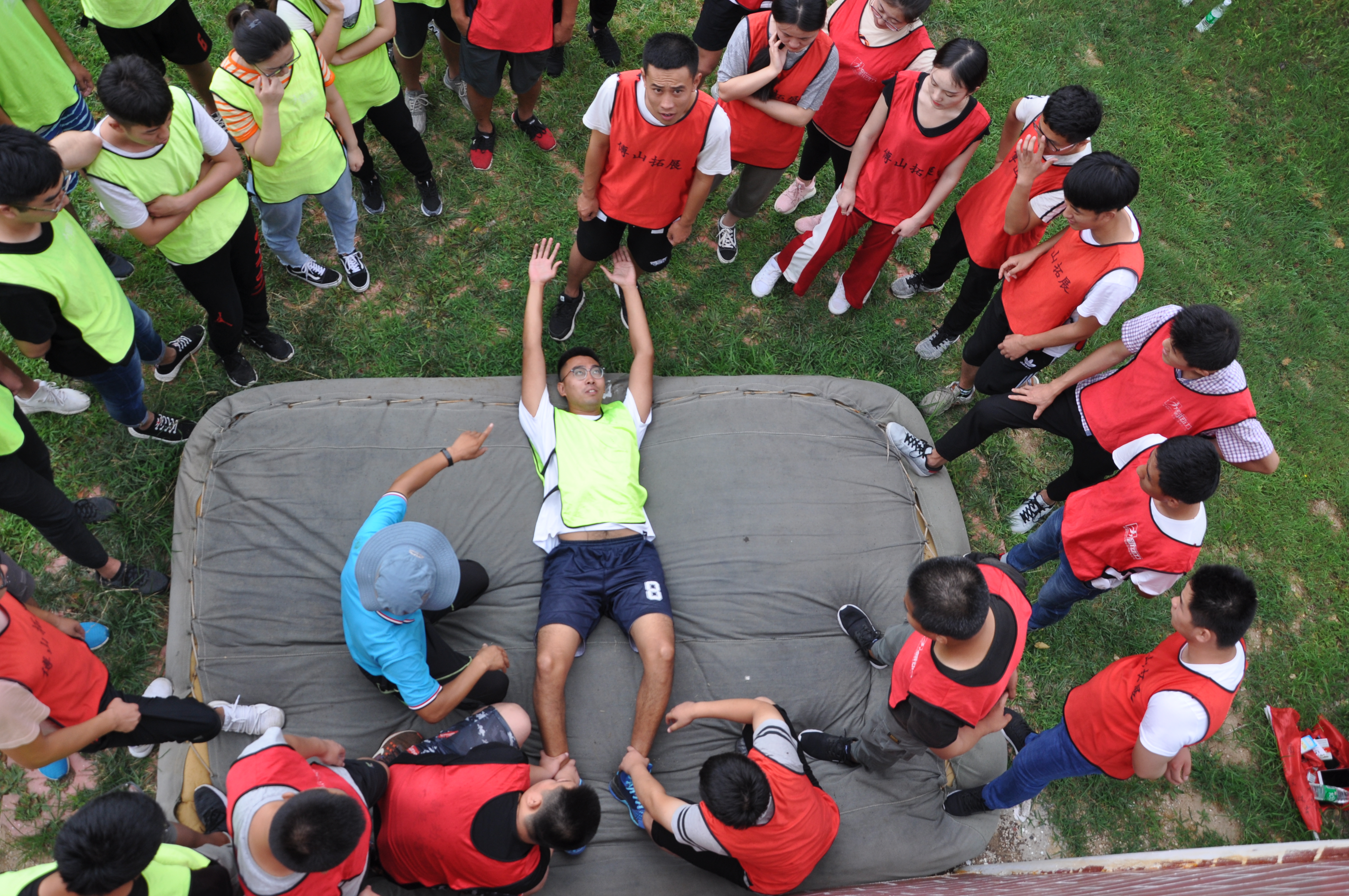 信任背摔項(xiàng)目中,隊(duì)友們搭起堅(jiān)實(shí)的人床,保證挑戰(zhàn)隊(duì)員的安全
