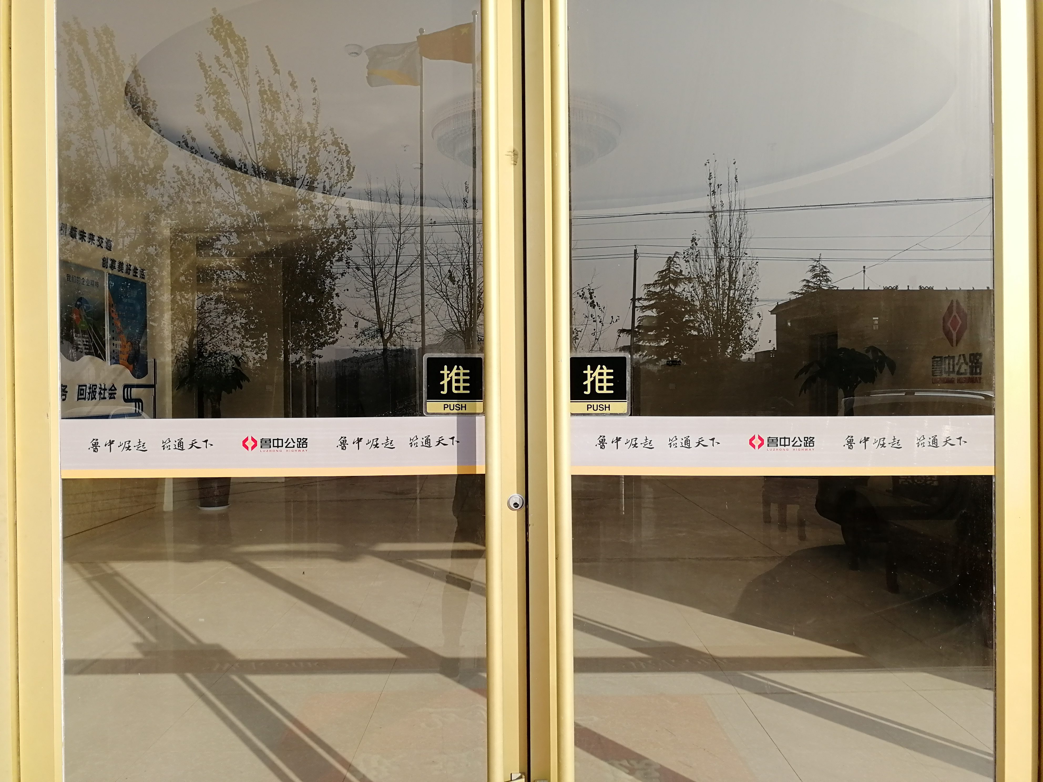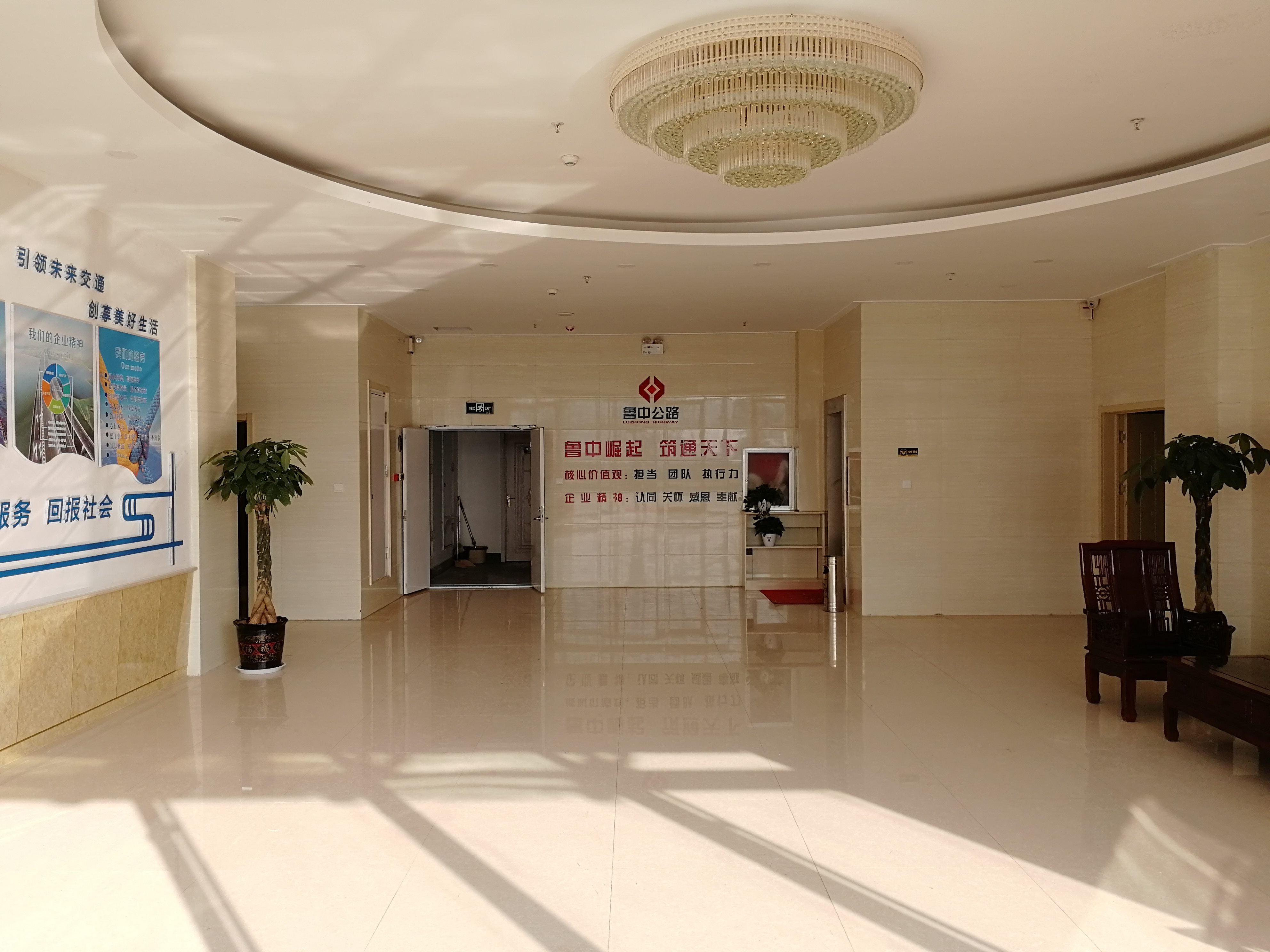 推開(kāi)項(xiàng)目部大門(mén),進(jìn)入一樓大廳內(nèi),首先映入眼簾的是魯中公路標(biāo)志及文化標(biāo)語(yǔ)。