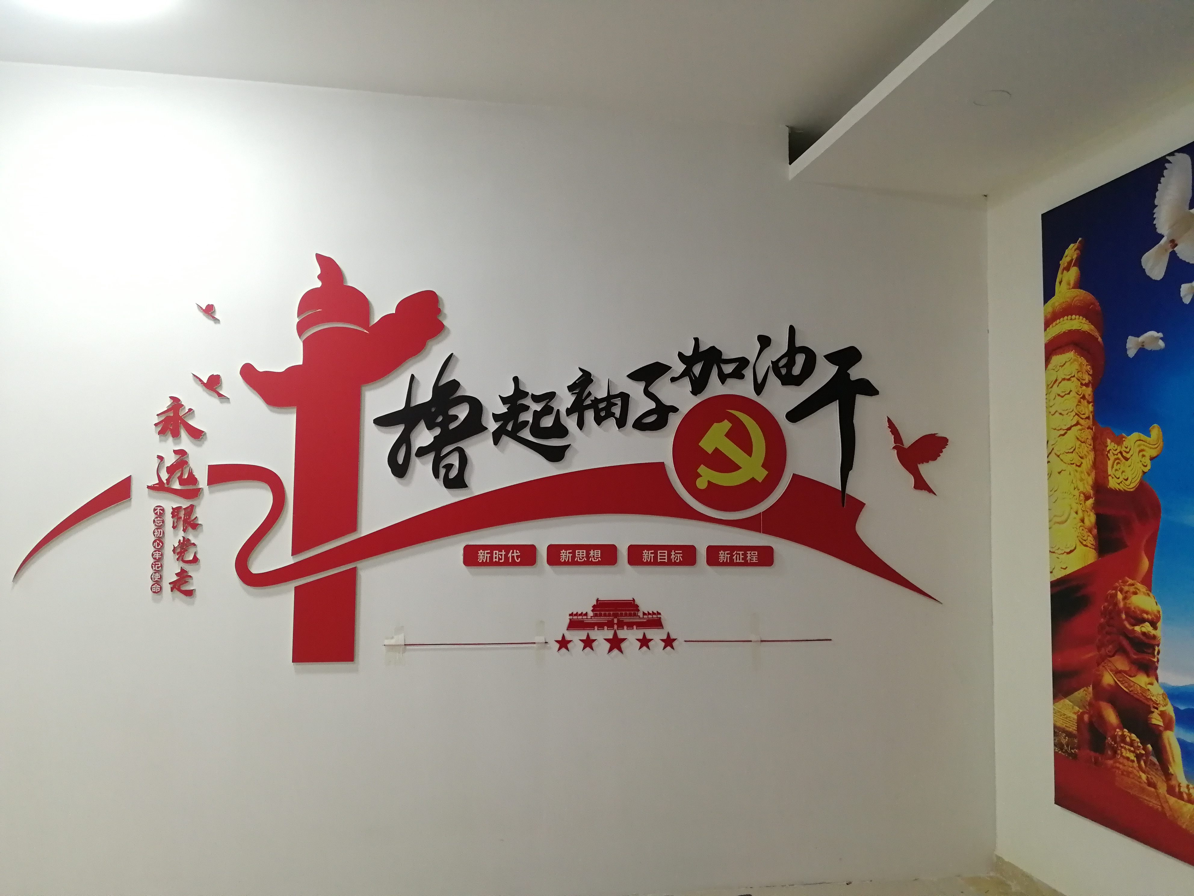 黨員活動(dòng)室內(nèi)的大幅黨建宣傳圖。