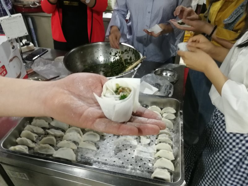 午飯過后,經過兩個小時的努力,項目部食堂已經準備好的一摞摞餃子皮和四大盆餃子餡,為了盡可能照顧到每位員工的口味,食堂準備了芹菜肉、蕓豆肉、韭菜肉的、黃瓜素四種餃子餡。下午四點多,項目部年輕的帥哥美女們放下手中的工作,來到項目部廚房,圍著桌子有說有笑的開始包起了餃子。會的教不會的,不會的學著包,個個大顯伸手,充分展示著自己的手藝……