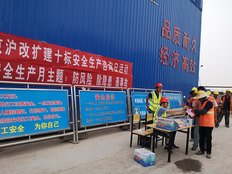 在綜合場(chǎng)站設(shè)立安全咨詢臺(tái)分發(fā)“安全生產(chǎn)明白卡”及“安全指導(dǎo)手冊(cè)”,宣傳安全生產(chǎn)知識(shí)及法律法規(guī),面對(duì)面解決施工人員關(guān)心的安全生產(chǎn)問題,切實(shí)做好安全咨詢活動(dòng)及人文關(guān)懷。