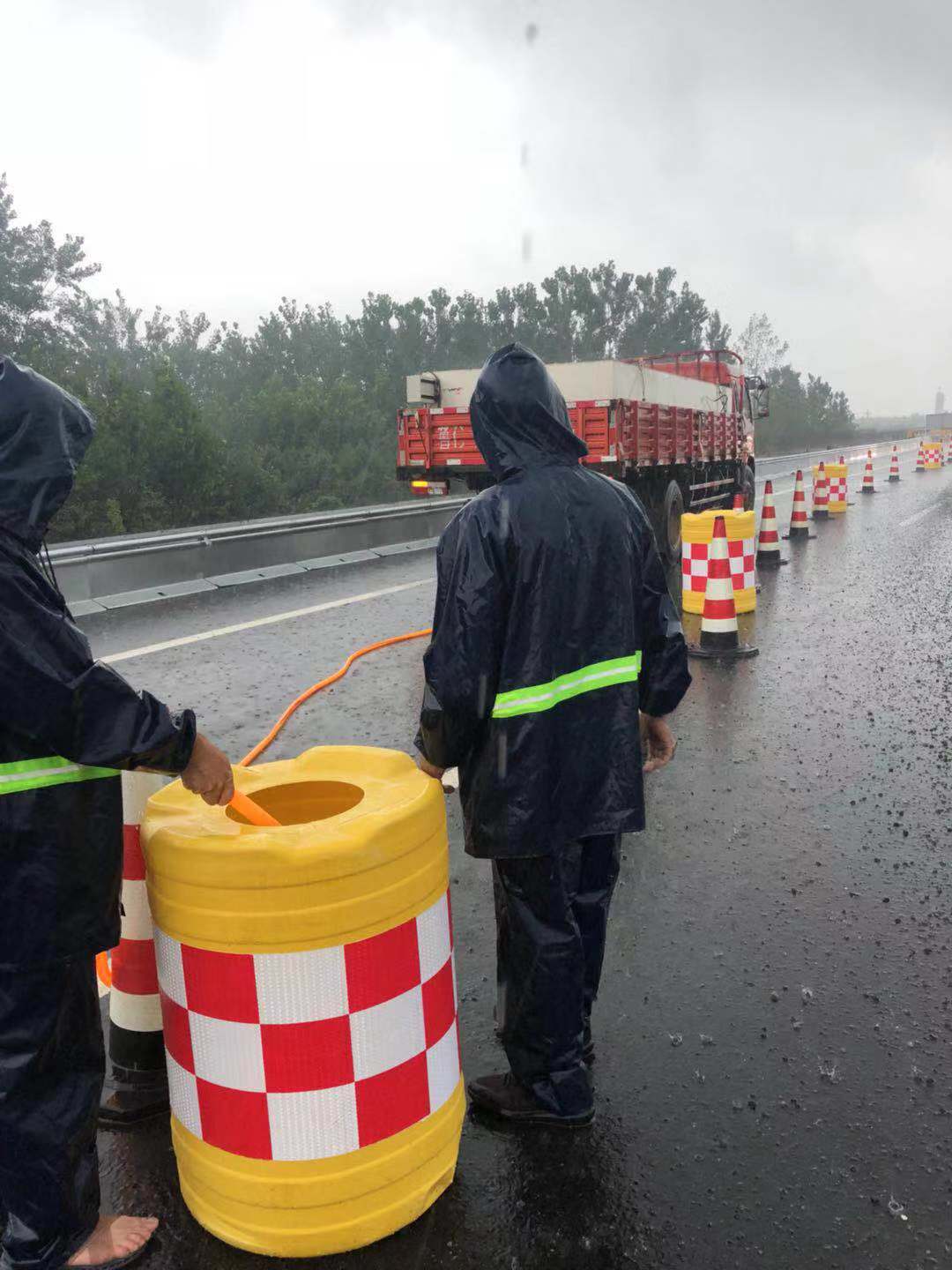 對(duì)水馬、防撞筒進(jìn)行注水補(bǔ)水加重