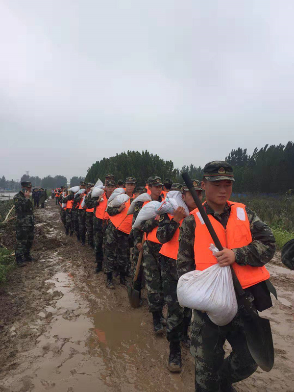 受“利奇馬”影響,8月10號(hào)到12號(hào)淄博市普降暴雨,孝婦河水位暴漲,袁家橋村段發(fā)生兩處50米、10米的決口,附近村莊被淹,情況危急。在項(xiàng)目自身受到臺(tái)風(fēng)與洪水影響的情況下,魯中公路經(jīng)開區(qū)分公司自8月11日17時(shí)開始,分批次投入搶險(xiǎn)人員34人,搶險(xiǎn)車輛7臺(tái),冒雨投入到抗洪救災(zāi)搶險(xiǎn)工作中。8月12日4時(shí),魯中公路柳園路孝婦河橋項(xiàng)目部又組織11人救援小組與一臺(tái)裝載機(jī)雨中再次奔赴搶險(xiǎn)救援現(xiàn)場(chǎng)。在省、市、開發(fā)區(qū)、及市交通運(yùn)輸局等領(lǐng)導(dǎo)的督導(dǎo)下,水利專家的指導(dǎo)下,魯中公路與500多名武警官兵、公安干警、消防戰(zhàn)士,及經(jīng)開區(qū)管委會(huì)、經(jīng)開區(qū)各施工單位,當(dāng)?shù)孛癖姷?000多人經(jīng)過兩天近50個(gè)小時(shí)的日夜奮戰(zhàn),8月13日下午16時(shí),袁家橋段缺口成功堵住。