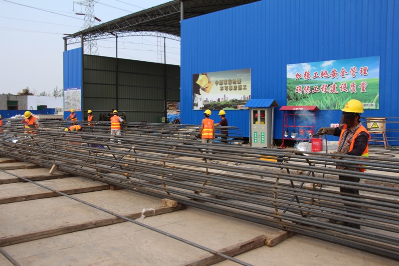 5月25日進駐現(xiàn)場,立即開始清理建筑垃圾,平整場地,搭建板房,硬化地面……經(jīng)過了不到半個月的時間,舊貌換新顏,一片嶄新、美觀、整潔的項目部辦公生活區(qū)展現(xiàn)在人們面前,屋脊上“魯中公路”四個紅色大字在夜晚熠熠發(fā)光,照亮整個院落。同時,鋼筋加工棚順勢拔地而起,筑島圍堰逐步向孝婦河中心推進,鋼筋原材料進場,鋼筋籠焊接也在悄然展開,這似乎在醞釀著什么,又像是在等待著什么。