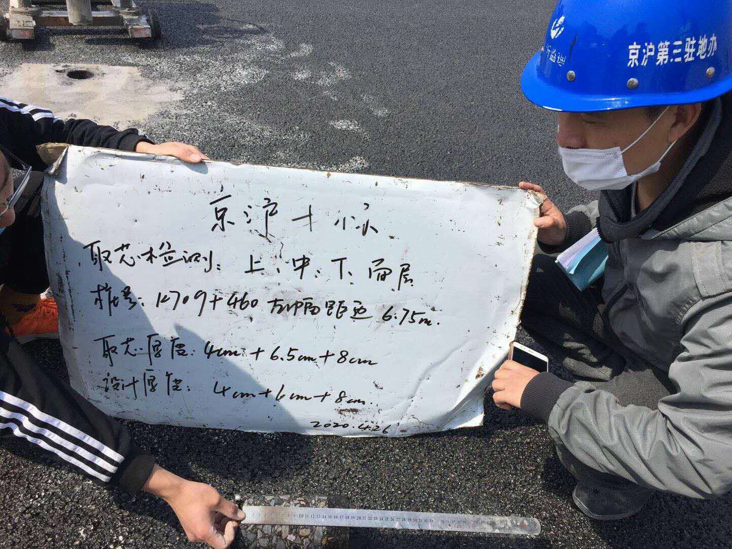 質(zhì)量是一個單位生存的基礎(chǔ),試驗員馬興邦與監(jiān)理進行厚度質(zhì)量檢測。