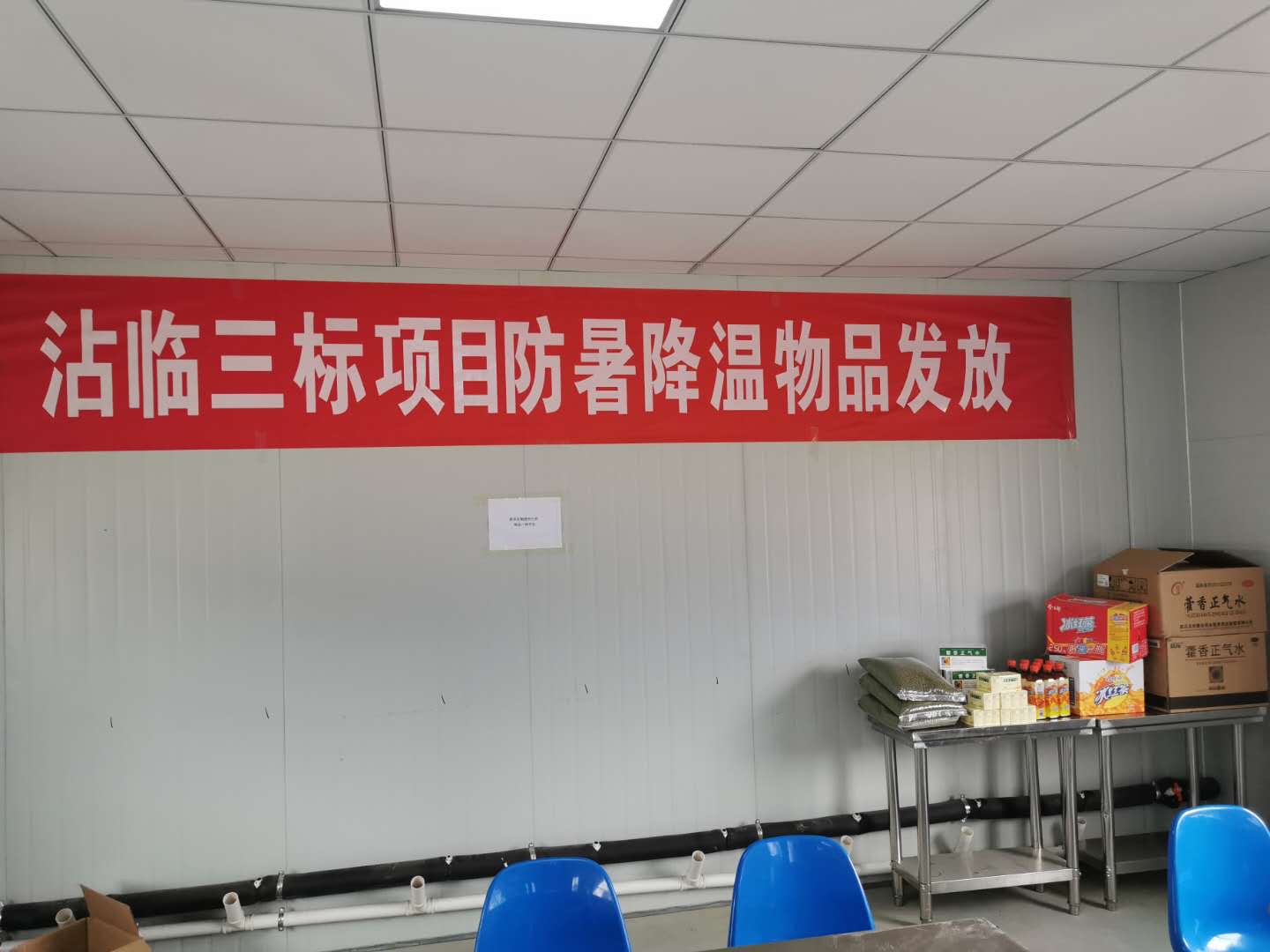 連日來(lái)的高溫天氣,讓工地變成了名副其實(shí)的“大烤爐”,與此同時(shí),沾臨項(xiàng)目部正時(shí)值大干黃金期,在工地施工的一線工人兄弟的情形也可想而知。免不了露天作業(yè)的他們必定揮汗如雨,體能消耗急劇加快。工人兄弟們的防暑降溫工作就成了心頭大事。