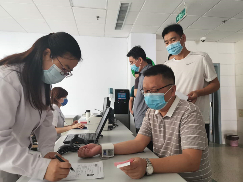 為避免疫情期間人群聚集,公司與市職業(yè)病防治院溝通協(xié)調(diào),在確保工作、體檢兩不誤的情況下,體檢特別選在6月13日、14日周末時間段。為避開就診高峰期,早7點30分,體檢項目全面開始。每個體檢項目都有序安排,抽血、彩超、心電等項目同步進行,體檢完后還可以吃到醫(yī)院特供的營養(yǎng)早餐。