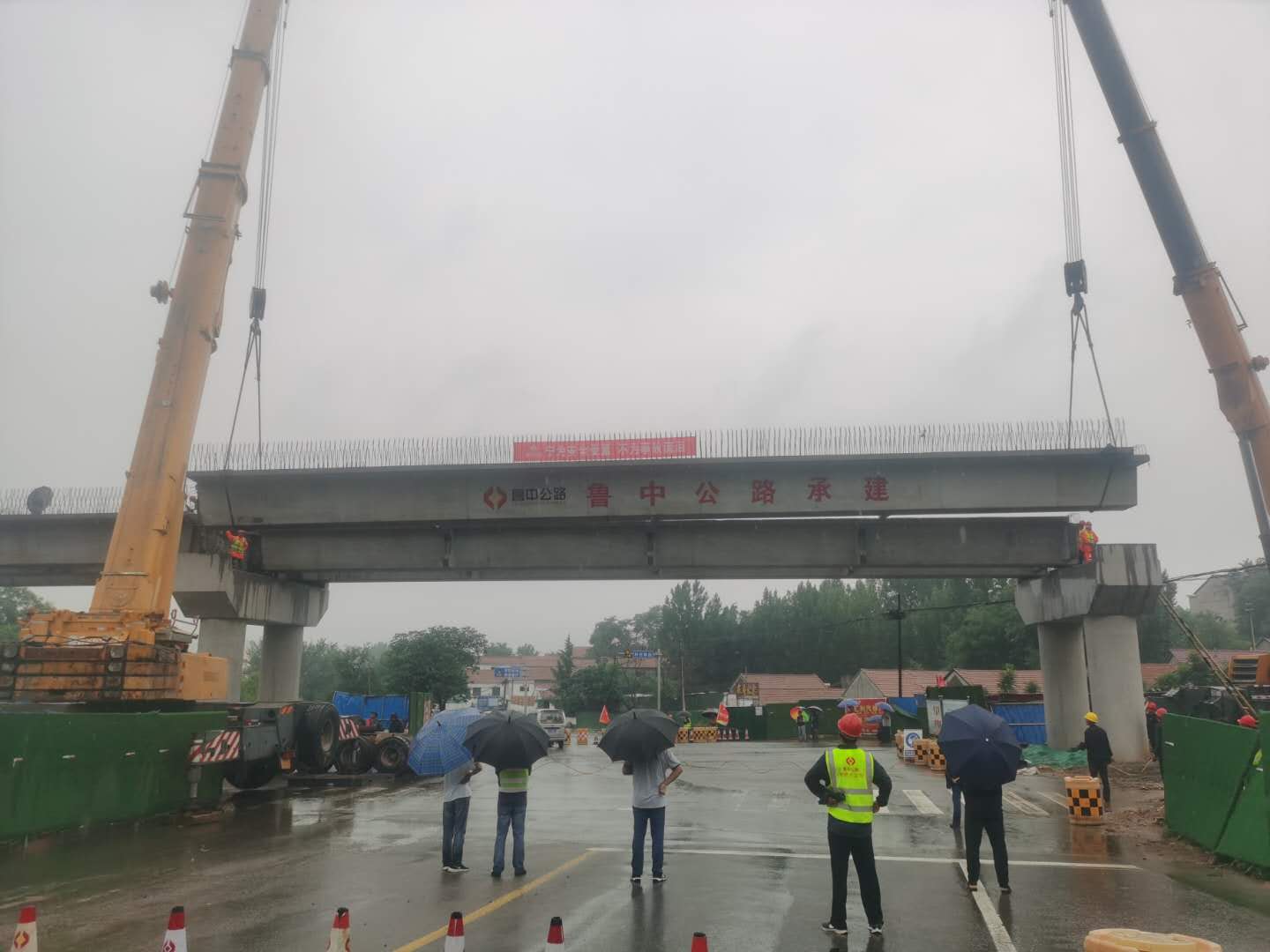 6月17日我部對膠海線南崔路立交橋第三、四跨箱梁進行了吊裝??紤]到本次吊裝的特殊性,我部在6月12日組織召開施工及交通組織方案專家論證會,淄博市交通運輸事業(yè)服務中心、沂源縣交通運輸局、沂源公路事業(yè)服務中心、淄博市交通警察支隊沂源大隊、監(jiān)理等單位參加了會議。會議上確定了吊裝第四跨時南崔路的封閉方式及繞行提示,并確定了吊裝完成后的防墜物措施。我部自6月14日開始通過掌上麻城、沂源廣播、發(fā)放交通臨時封閉通知等方法提示車輛封閉交通時間。