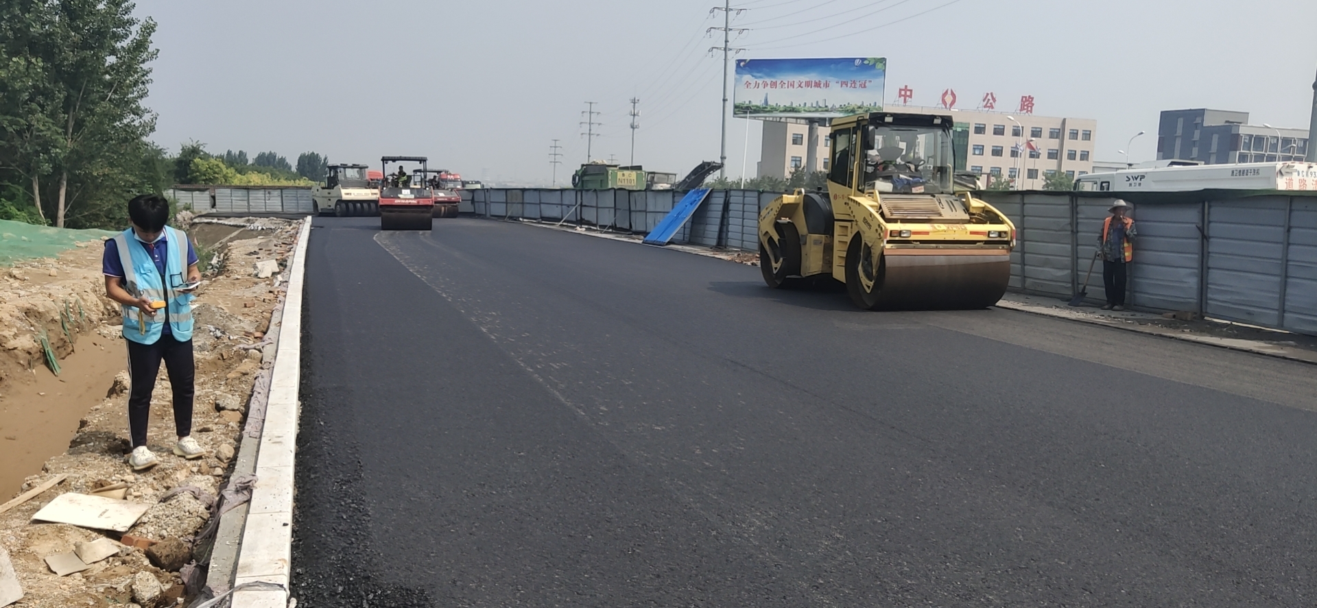 2020年8月28日上午8時(shí),魯山大道拓寬改造工程全線第一段瀝青攤鋪開始,計(jì)劃8月29日攤鋪魯山大道東側(cè)加寬段瀝青下面層,8月30日魯山大道主路東側(cè)半幅上面層瀝青攤鋪,8月31日魯山大道主路西側(cè)半幅上面層瀝青攤鋪。