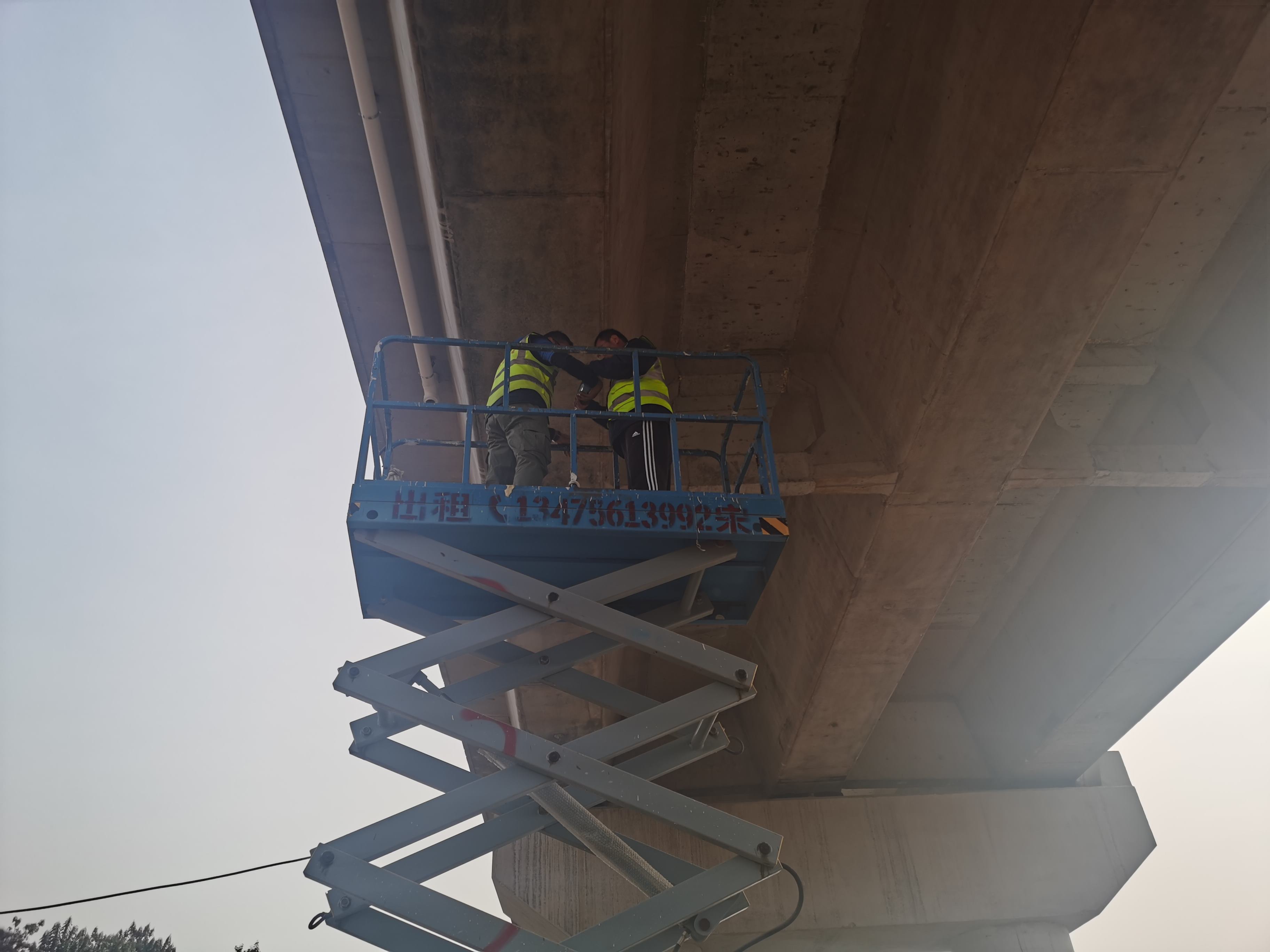 檢測(cè)人員對(duì)墩柱進(jìn)行檢測(cè)