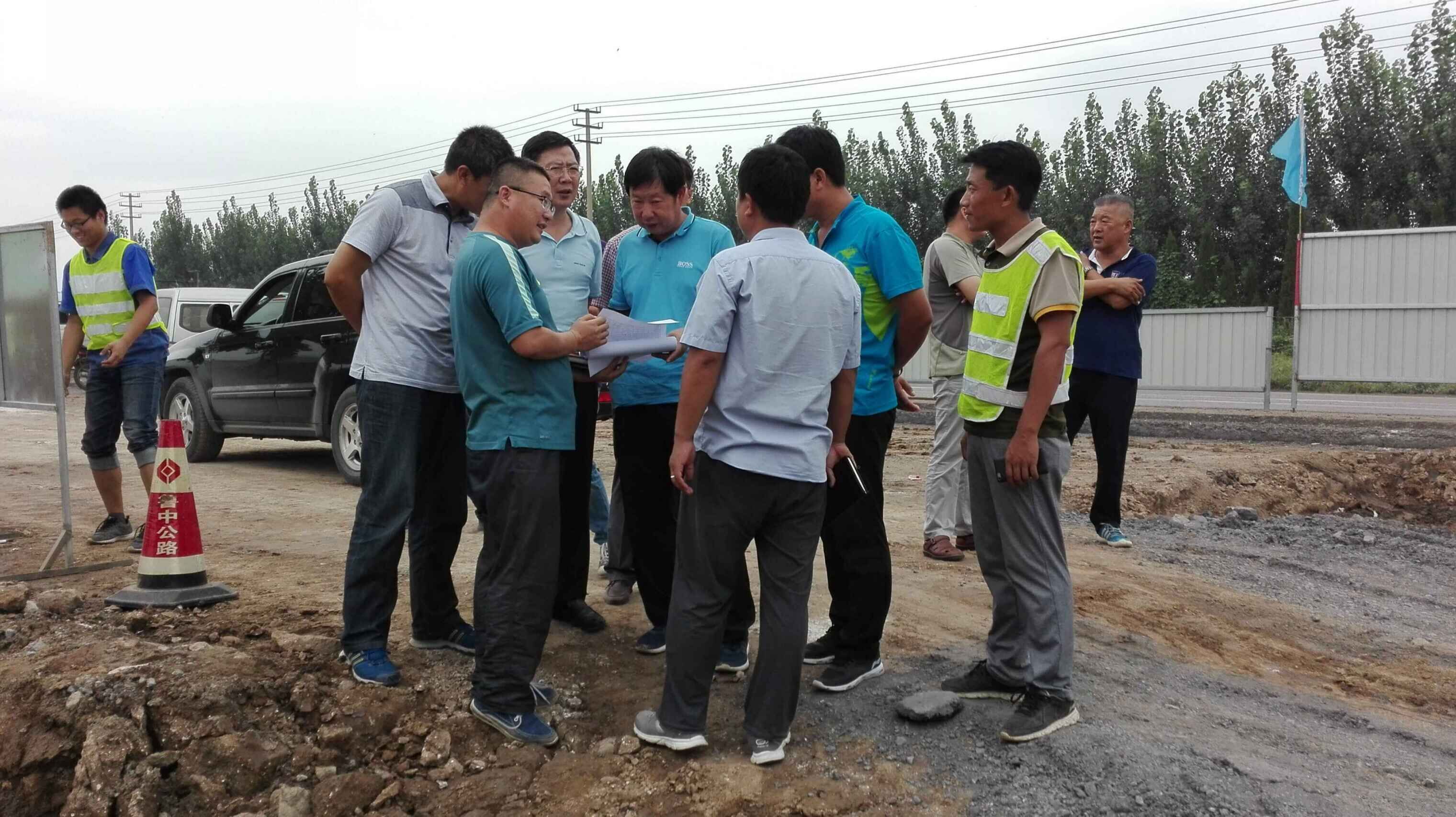2016年8月16日,質監(jiān)站張站長、改建辦謝國木、總監(jiān)辦翟立寧、監(jiān)理處吳戰(zhàn)、王斌等領導在項目經理翟峰、項目總工田建偉、副經理殷軍、宋希偉等人陪同檢查省道102淄川段安全施工工作。