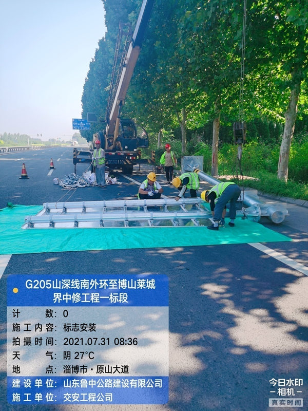 天氣轉(zhuǎn)好后加班加點的同時,合理分配人員,積極開展標志牌安裝工作。將現(xiàn)有人員分為標志桿卸車、安裝兩組,前面卸車后面跟進安裝。每日最大安裝量可達到大型導向標志8個,標志桿最大卸車量達到40余根。