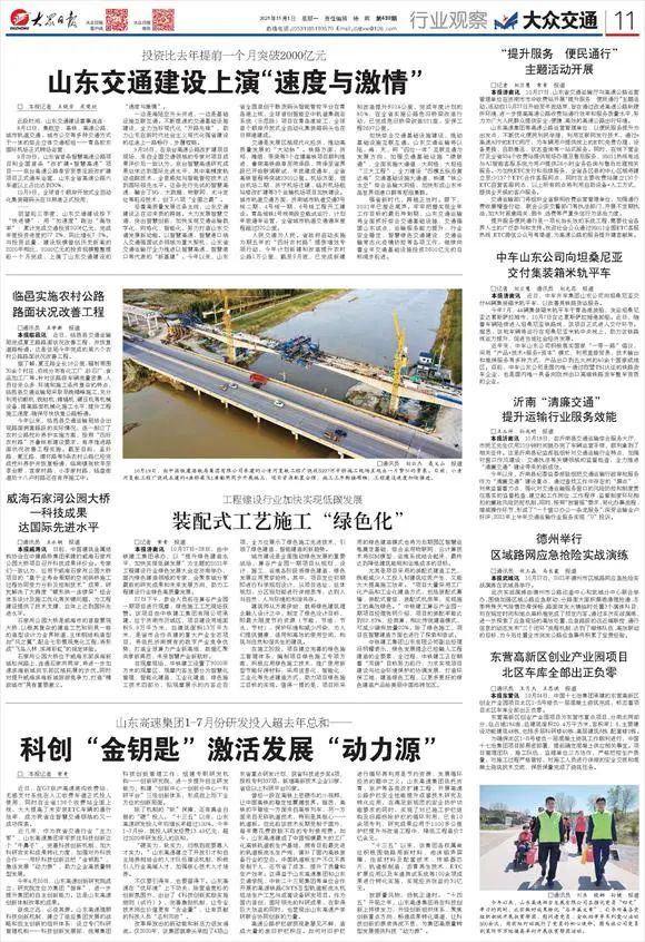 強(qiáng)省新時(shí)代,跨越正當(dāng)時(shí)。眼下,2021年已接近尾聲。牢牢把握實(shí)現(xiàn)全年工作目標(biāo)的最后沖刺期,山東交通運(yùn)輸將全面抓好綜合交通基礎(chǔ)設(shè)施、交通強(qiáng)國山東試點(diǎn)、運(yùn)輸服務(wù)能力提升、行業(yè)安全穩(wěn)定、智慧綠色交通建設(shè)、交通運(yùn)輸常態(tài)化疫情防控等各項(xiàng)工作,繼續(xù)向著全年交通基礎(chǔ)設(shè)施投資2600億元的目標(biāo)闊步前進(jìn)。