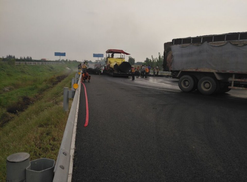 濱州工程項目上面層自2016年8月4日開始首件試驗段施工,8月28日開始全面攤鋪施工,歷時13天,共計15.2萬平方米。我濱州工程項目部承建的樞紐互通立交包含特大橋1座、大橋6座、中橋8座、小橋10座、涵洞8座及匝道8條。主線橋長1168.06米,共15聯(lián)46孔,匝道橋共7座,合計2159.34米,路面施工難度可想而知。面對緊張的工期安排,我濱州項目全體員工在公司以及各級領(lǐng)導(dǎo)的幫助下,以高昂的工作狀態(tài),專業(yè)的施工技術(shù),按質(zhì)按量的完成了路面施工任務(wù)。作為濟東高速全線最大的樞紐互通立交,我部各項施工進度和質(zhì)量控制,一直以來都是各級領(lǐng)導(dǎo)關(guān)注的焦點。為此,我部在不斷加強投入的同時,加強自身管理,嚴格質(zhì)量把控,加強現(xiàn)場管理,做到“嚴抓細管”。炎炎烈日,汗水浸透了衣衫,滾燙的瀝青流淌著我一線職工辛勞的汗水。在上面層順利完成后,我部收到了駐地辦、市辦、總監(jiān)辦等各級領(lǐng)導(dǎo)的祝賀信息,同時也對我部優(yōu)秀的工作表現(xiàn)提出表揚,要求各標(biāo)段虛心觀摩學(xué)習(xí)。