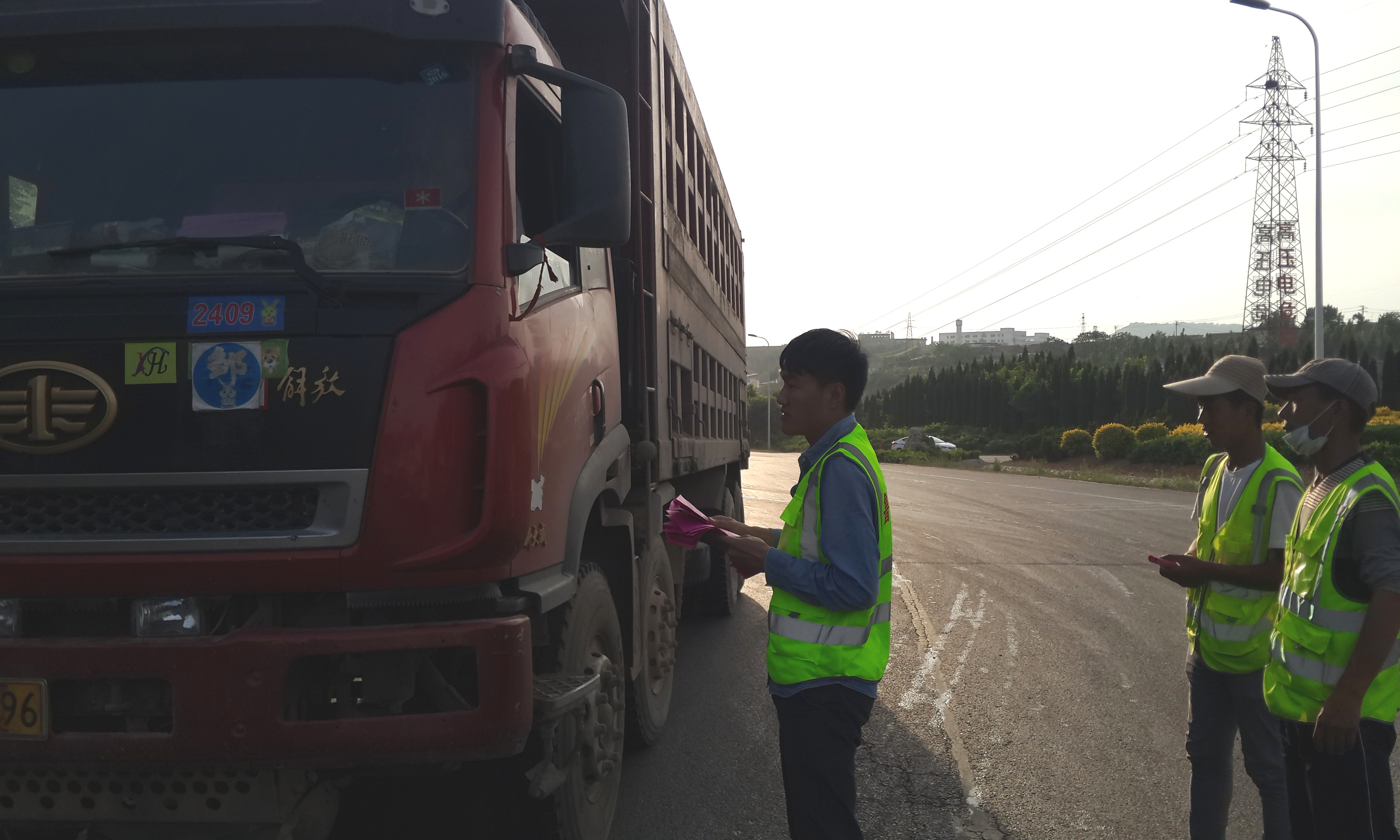 施工員向過(guò)往車輛發(fā)放傳單,告知博沂路封閉施工。