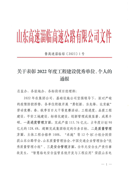 近日,山東高速淄臨高速公路有限公司發(fā)布魯高速淄臨綜【2023】1號(hào)——《關(guān)于表彰2022年度工程建設(shè)優(yōu)秀單位、個(gè)人的通報(bào)》,魯中公路臨臨項(xiàng)目六合同獲評(píng)“優(yōu)秀施工單位”等多項(xiàng)表彰。