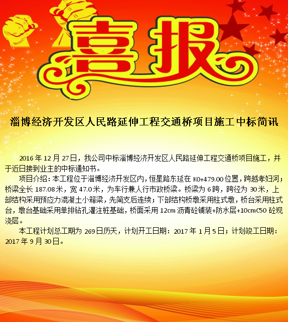 公司中標淄博經(jīng)濟開發(fā)區(qū)人民路延伸工程交通橋項目施工