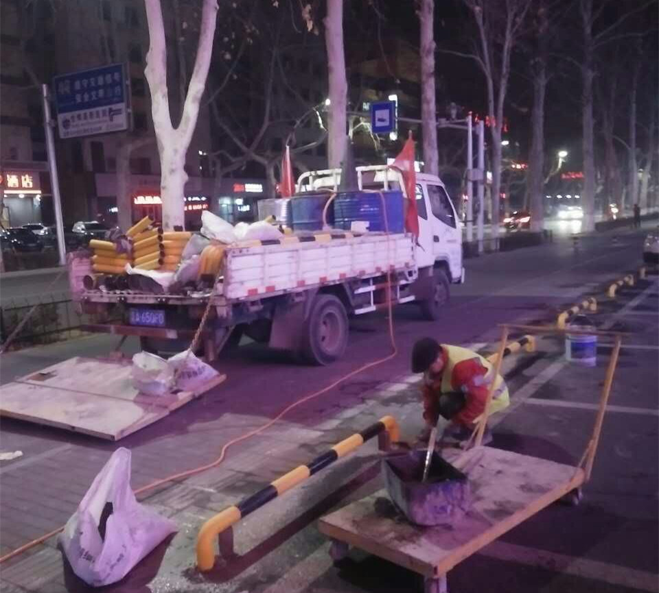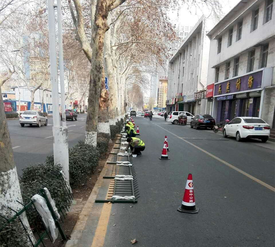 金晶大道(人民路—洪溝路)是淄博市主城區(qū)南北向城市主干路,地處繁華市中心,交通繁忙、交通情況復(fù)雜,如何保證安全文明施工,如何最大限度地減輕對外部交通的影響,對大家來說是個嚴(yán)峻的考驗(yàn)。項(xiàng)目管理人員精心組織、合理安排標(biāo)志基礎(chǔ)、擋車器、隔離樁等設(shè)施,選擇車少、人少的夜間進(jìn)行施工,克服了交通材料運(yùn)輸難等諸多困難,目前已完成綠化護(hù)欄3250米,標(biāo)志基礎(chǔ)45個,擋車器150個,隔離樁200個,累計(jì)完成施工產(chǎn)值60萬元。