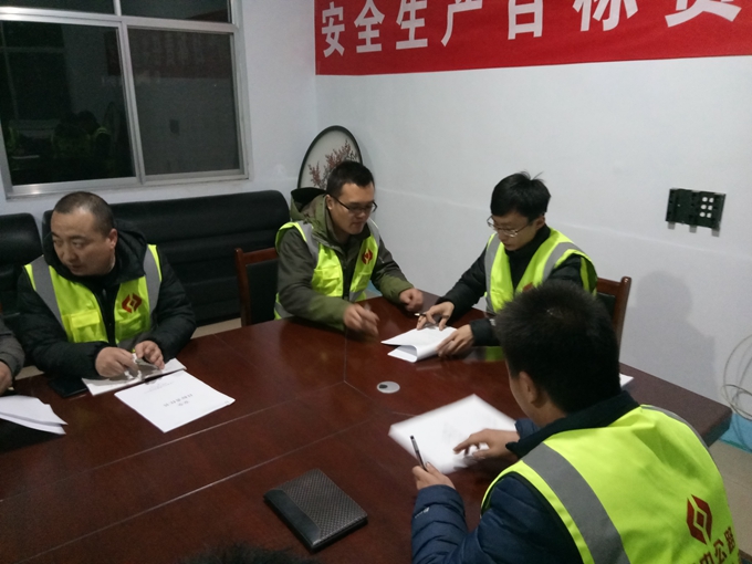 會(huì)議首先由項(xiàng)目經(jīng)理于道江對今年的工程安全形勢做出了總體介紹,對各科室、各部門安全工作任務(wù)進(jìn)行了詳細(xì)安排,與項(xiàng)目部各部門、科室之間分別簽訂了安全生產(chǎn)責(zé)任書,保障九東路安全生產(chǎn)零事故發(fā)生。九東路項(xiàng)目即將開工,對開工前的各項(xiàng)安全準(zhǔn)備工作及安全實(shí)施工作進(jìn)行了系統(tǒng)詳細(xì)的安排,做好安全及環(huán)保工作是保障生產(chǎn)的前提。要求制定完善安全監(jiān)督檢查制度;安全例會(huì)制度,通報(bào)近期安全工作情況;安全巡檢制度,不定期進(jìn)行安全巡視;加強(qiáng)機(jī)械安全管理,各類施工機(jī)械及自有車輛的安全保障;特種崗位崗前培訓(xùn),不定期進(jìn)行安全規(guī)程培訓(xùn)學(xué)習(xí);班前安全宣講制度,每道工序開展前進(jìn)行安全宣講。各部門、各科室也對今年的安全工作范圍做出了具體的匯報(bào)及安排。