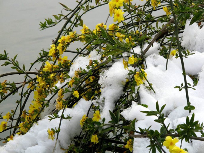 早春的寒冷更能透出迎春花那強大的生命力??箛篮瑧?zhàn)冰雪,生命的綠芽在茁壯成長,雖不比玉蓮冰上生,臘梅傲寒冬,但它能使萬物復(fù)蘇。它比不上牡丹那么富貴,玫瑰那么濃艷,還有月季的顏色,玉蘭的潔雅。眾香國里群芳平艷,絢麗奪目,它更不是“角兒”。但就是這份普普通通襯托著它的偉大、不凡。