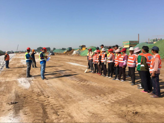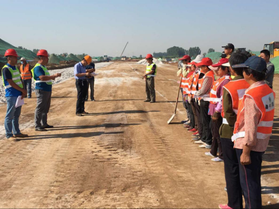 首先由項(xiàng)目總工葛啟輝從施工規(guī)范、擬投入機(jī)械配置、施工計(jì)劃、施工工藝、施工質(zhì)量控制等技術(shù)方面對(duì)施工隊(duì)伍進(jìn)行交底,然后由項(xiàng)目副經(jīng)理王方凱從高壓線下作業(yè)、機(jī)械安全操作、臨時(shí)用電、防火、防暑、文明環(huán)保施工、特種作業(yè)持證上崗、現(xiàn)場(chǎng)施工人員安全教育、安全生產(chǎn)管理等安全方面做出具體要求。