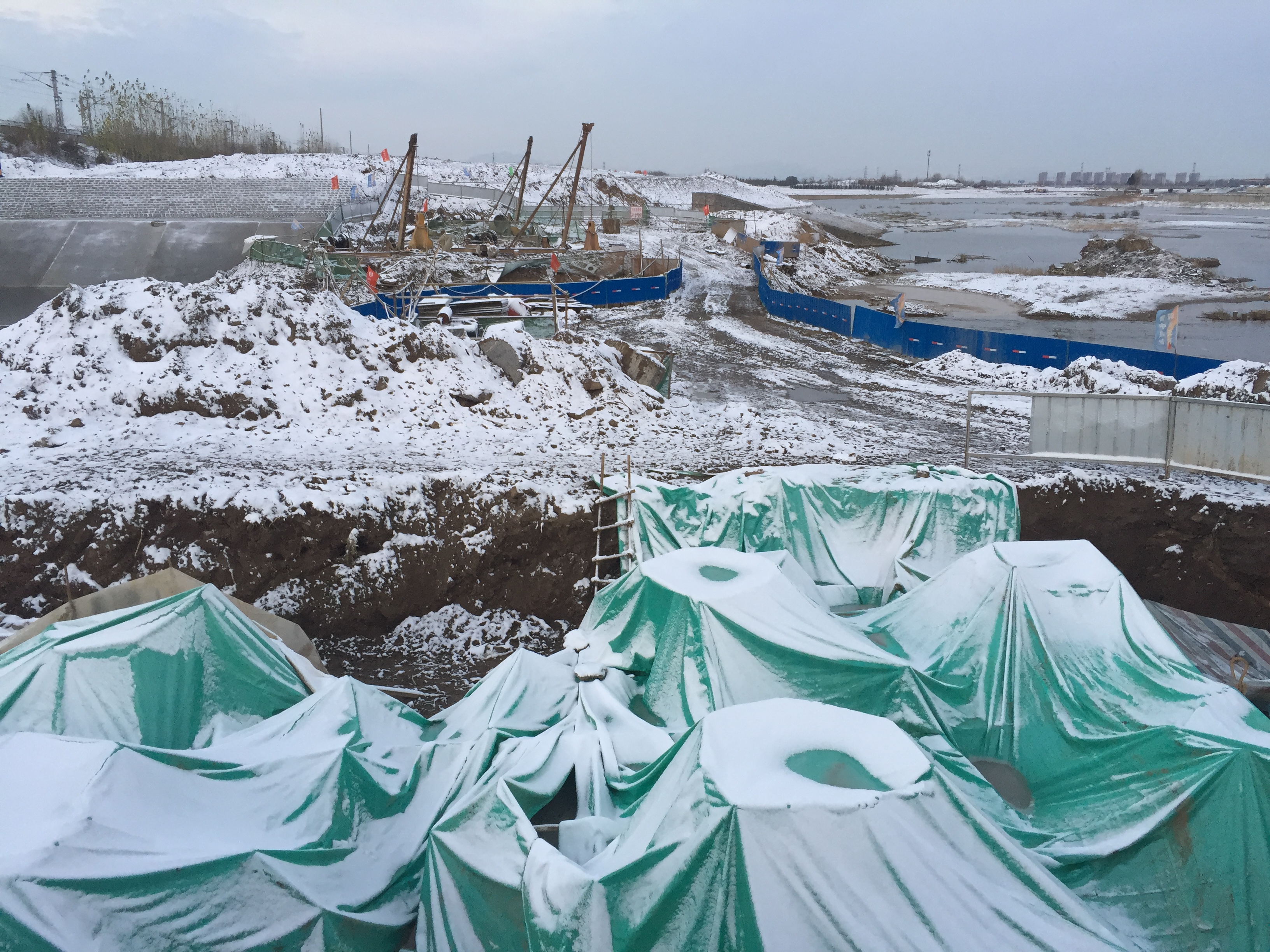 2017年1月14日,久違的藍(lán)天下,我們完成了最后一個圓承臺的澆筑。
