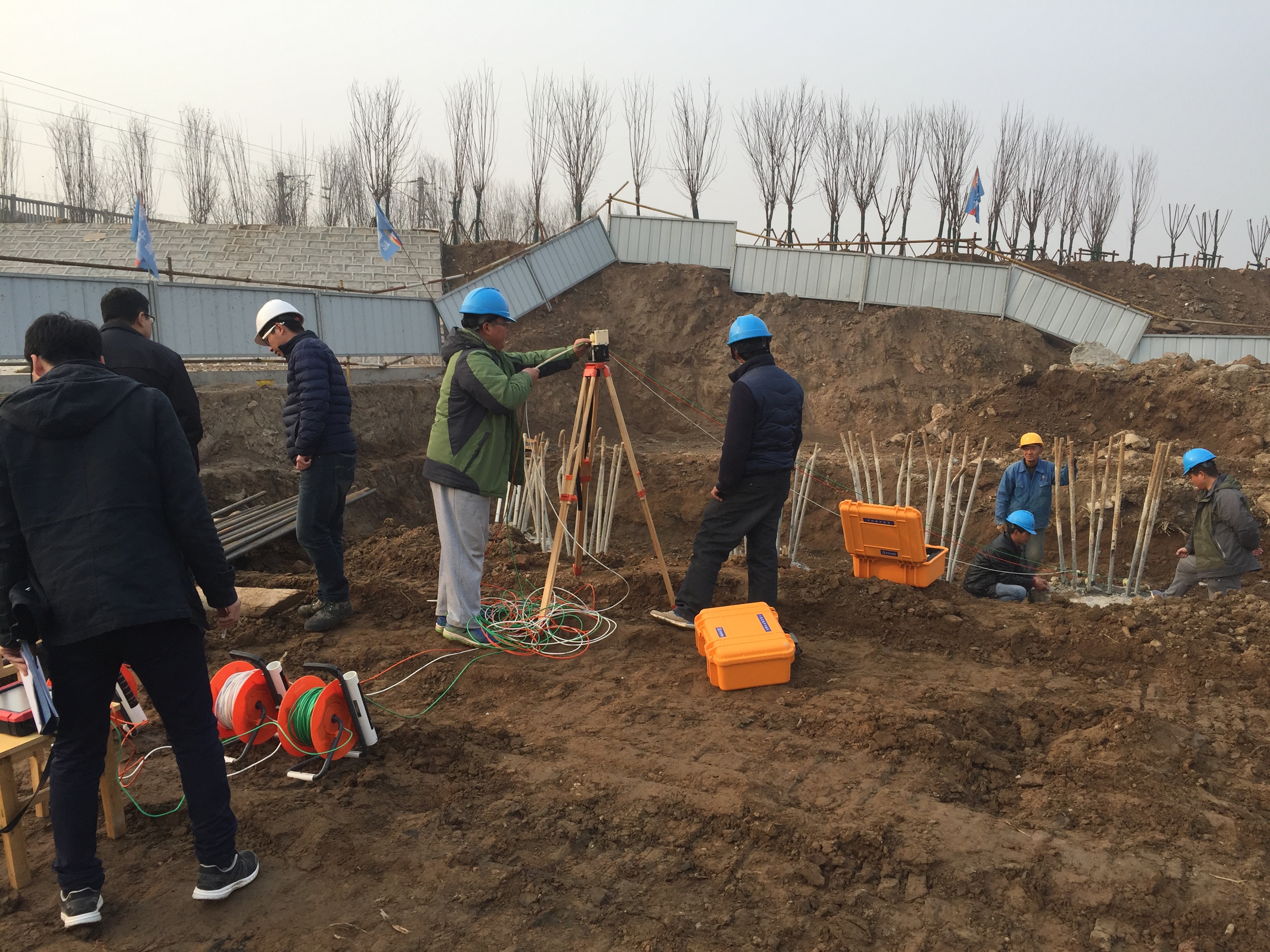2016年11月24日,利用探孔器檢測樁基成孔質(zhì)量。