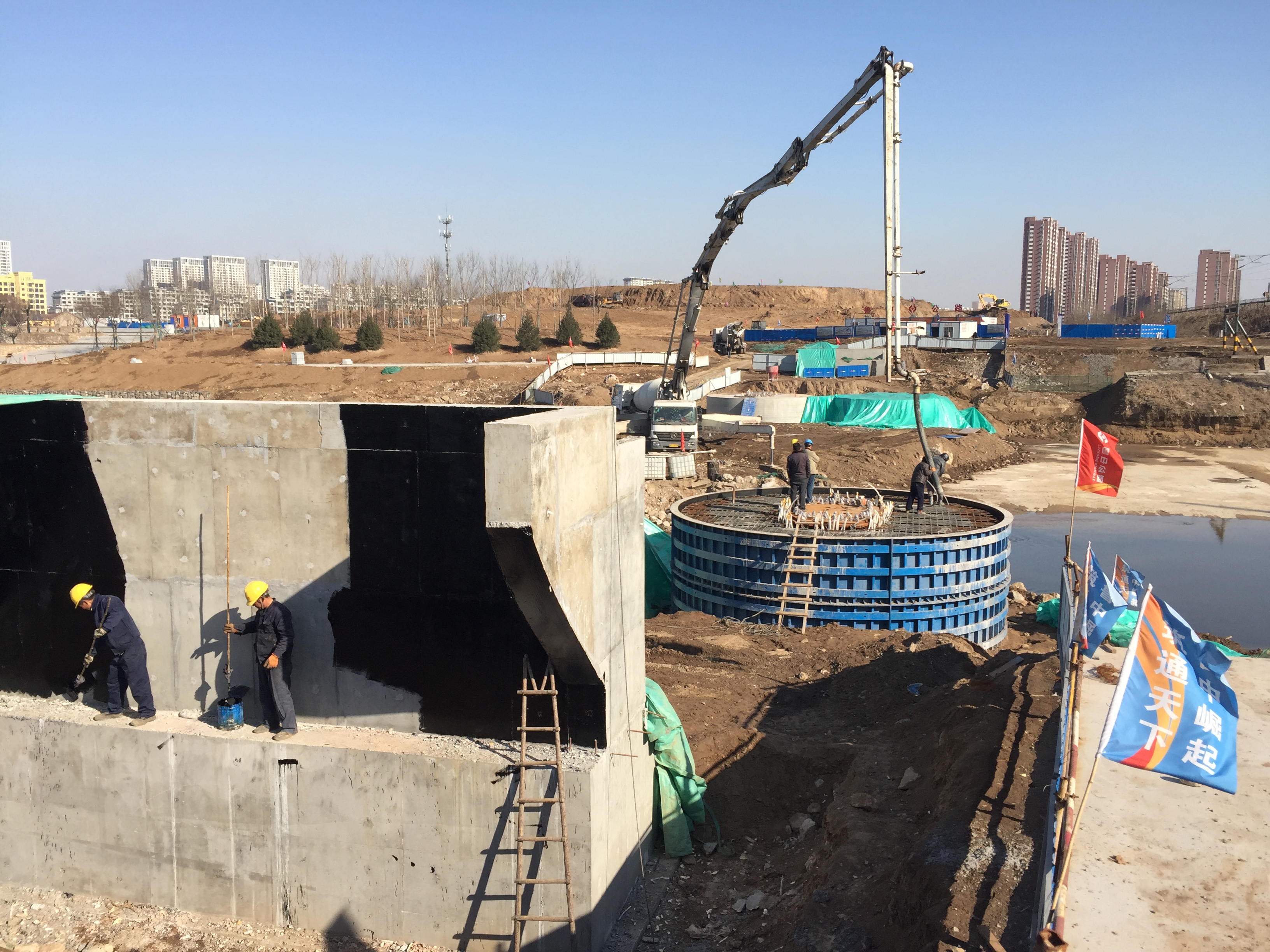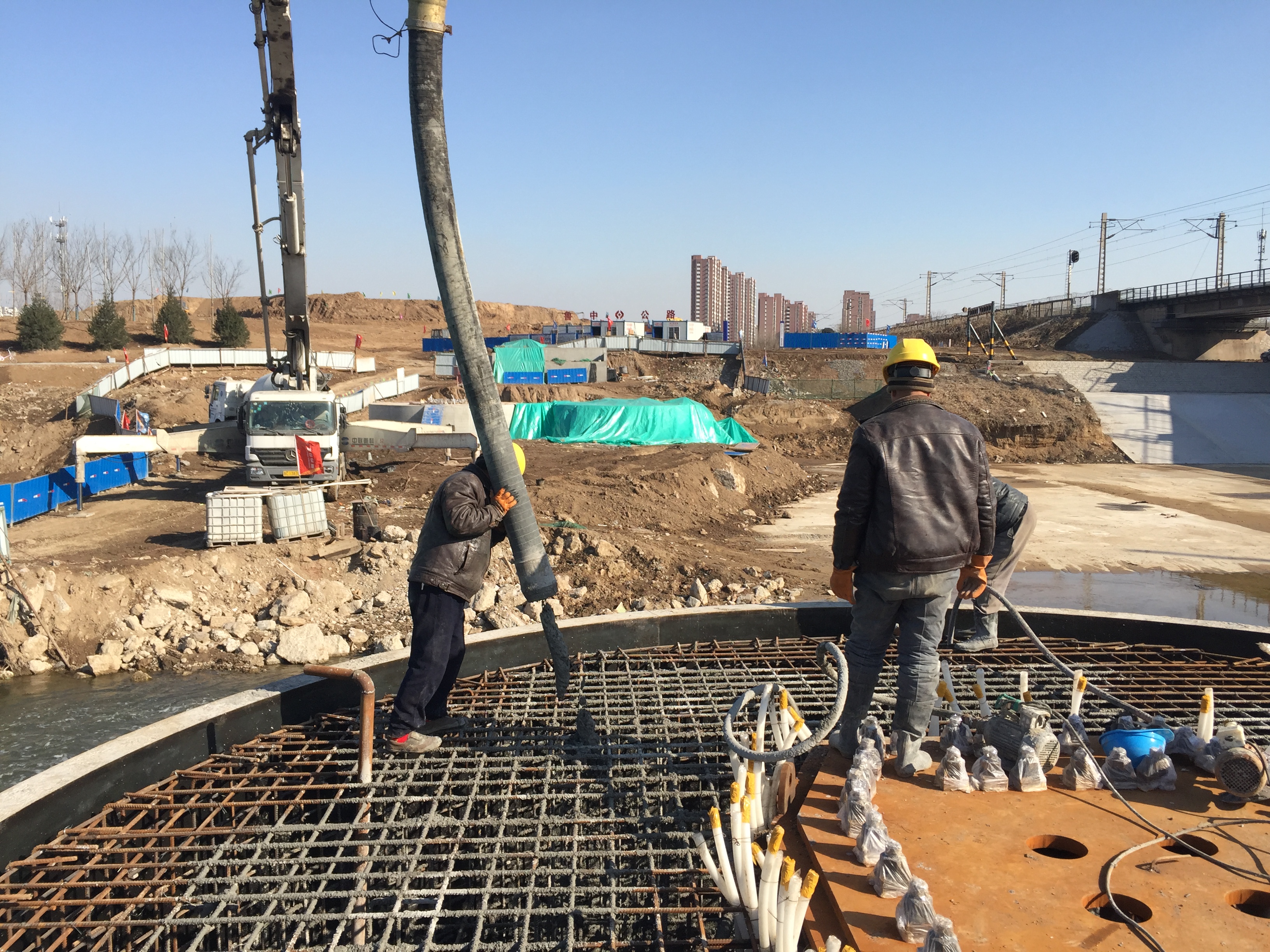 2017年1月2日,圓承臺混凝土養(yǎng)護(hù)。