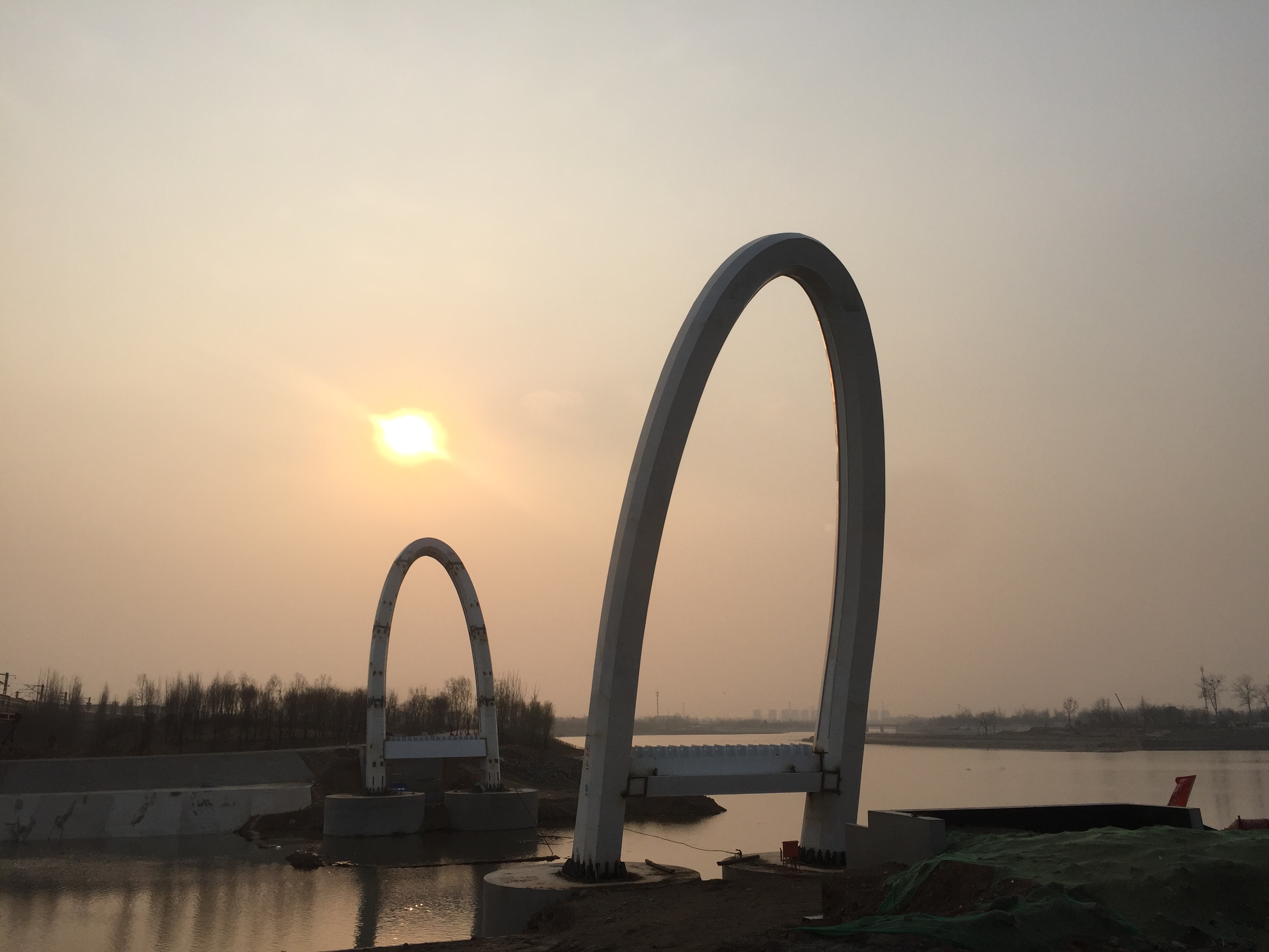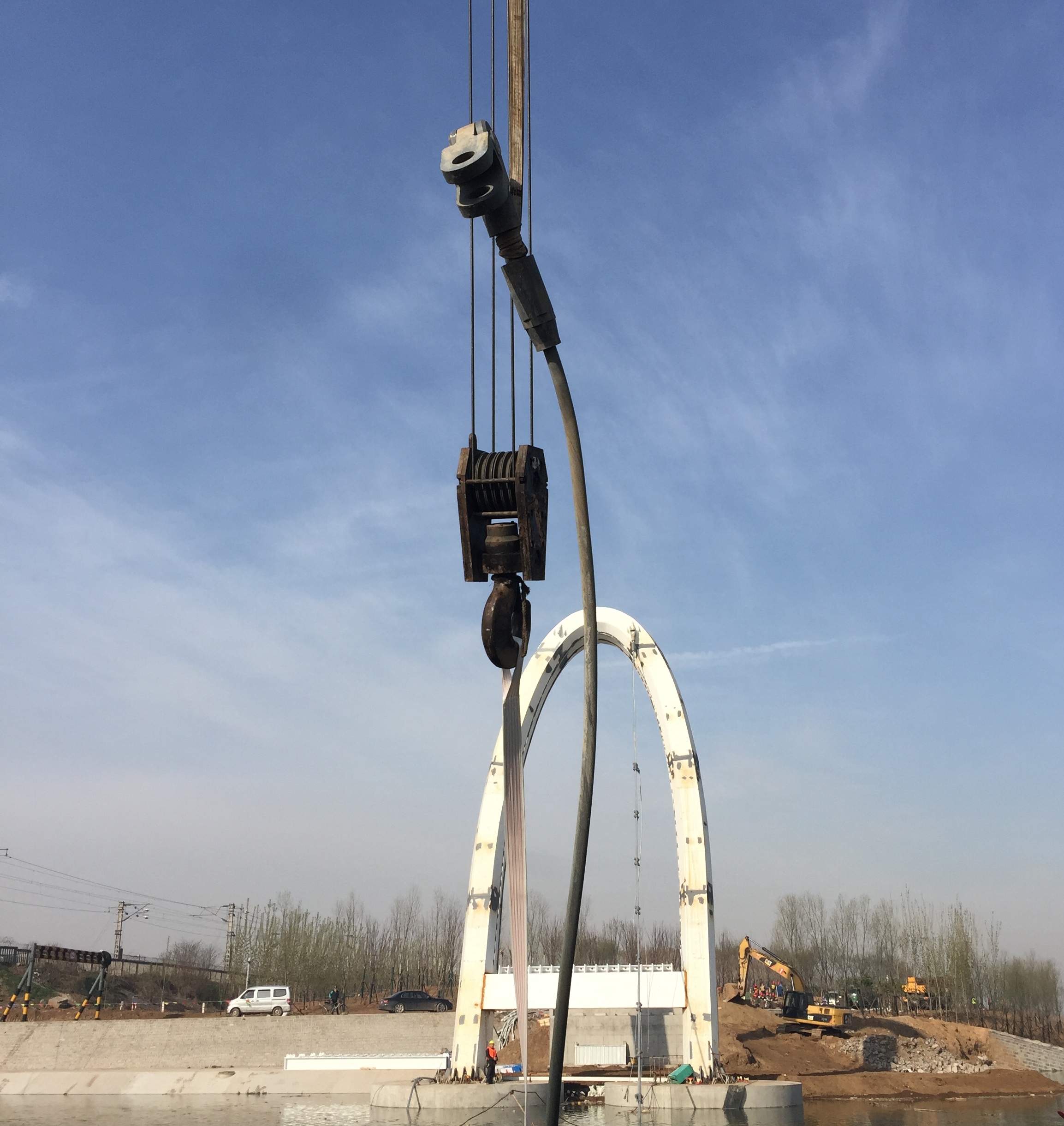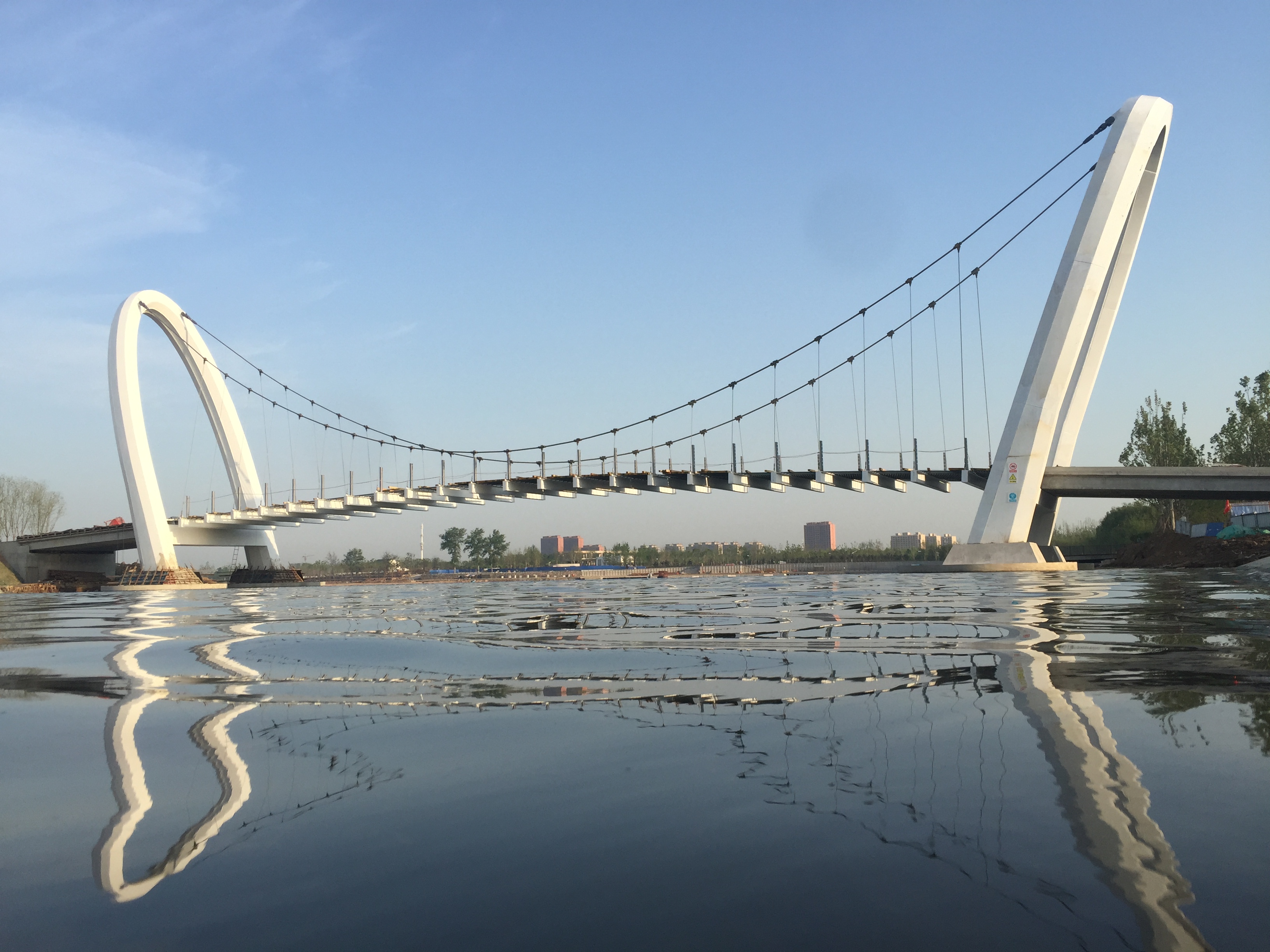 2016年9月7日,魯中公路中標(biāo)淄博市孝婦河黃土崖段綜合整治項目園區(qū)橋梁工程一標(biāo)段,主要施工范圍為鐵路北孝婦河橋及其配套設(shè)施。鐵路北孝婦河橋位于膠濟(jì)鐵路北側(cè)孝婦河上,結(jié)構(gòu)形式為懸索橋。主橋為空間纜面懸索橋,長92m,跨徑為60米,橋面寬度8m,人行道凈寬7.3m。