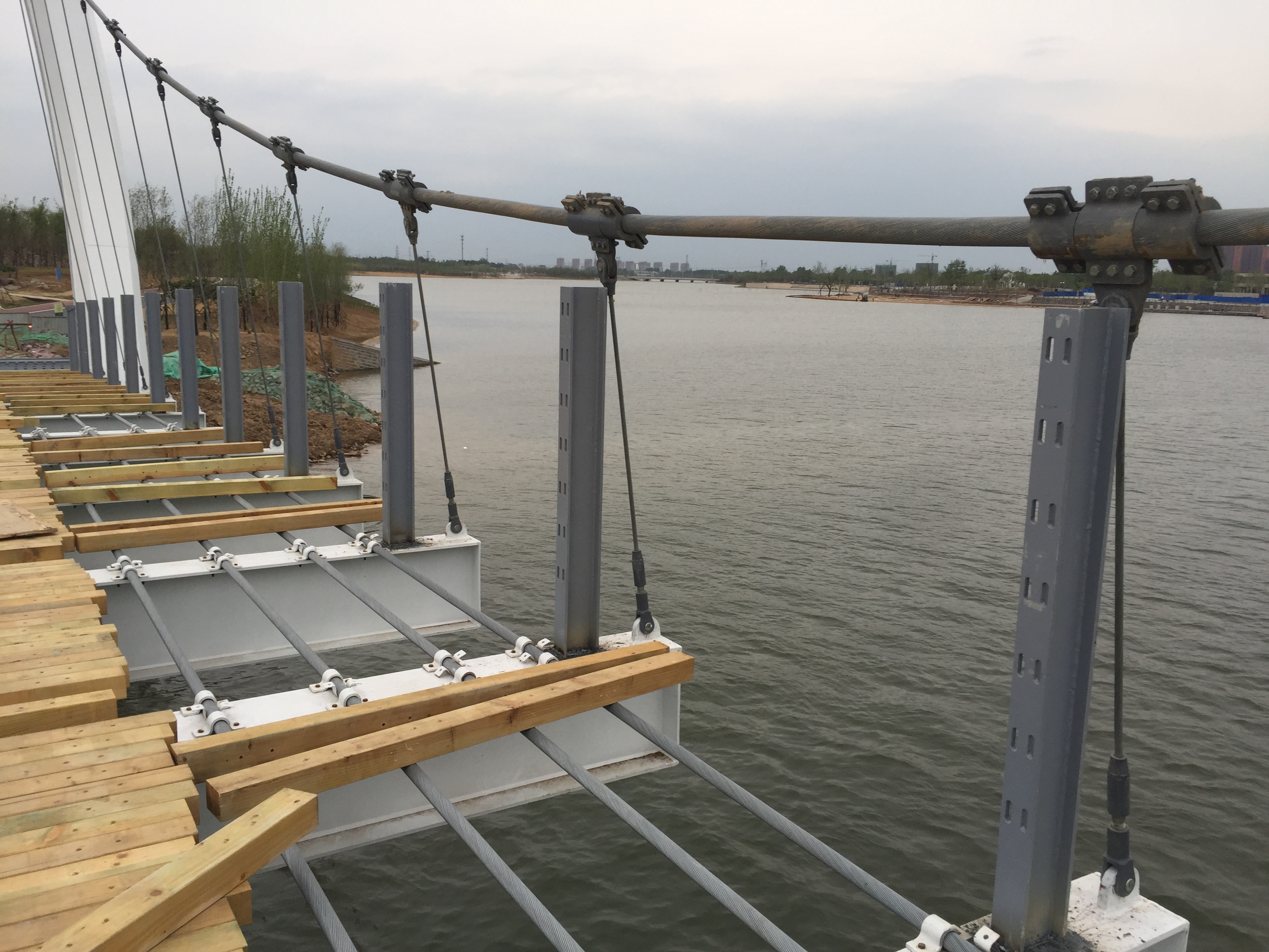 2017年4月30日,懸索橋鋼護(hù)欄開始安裝。